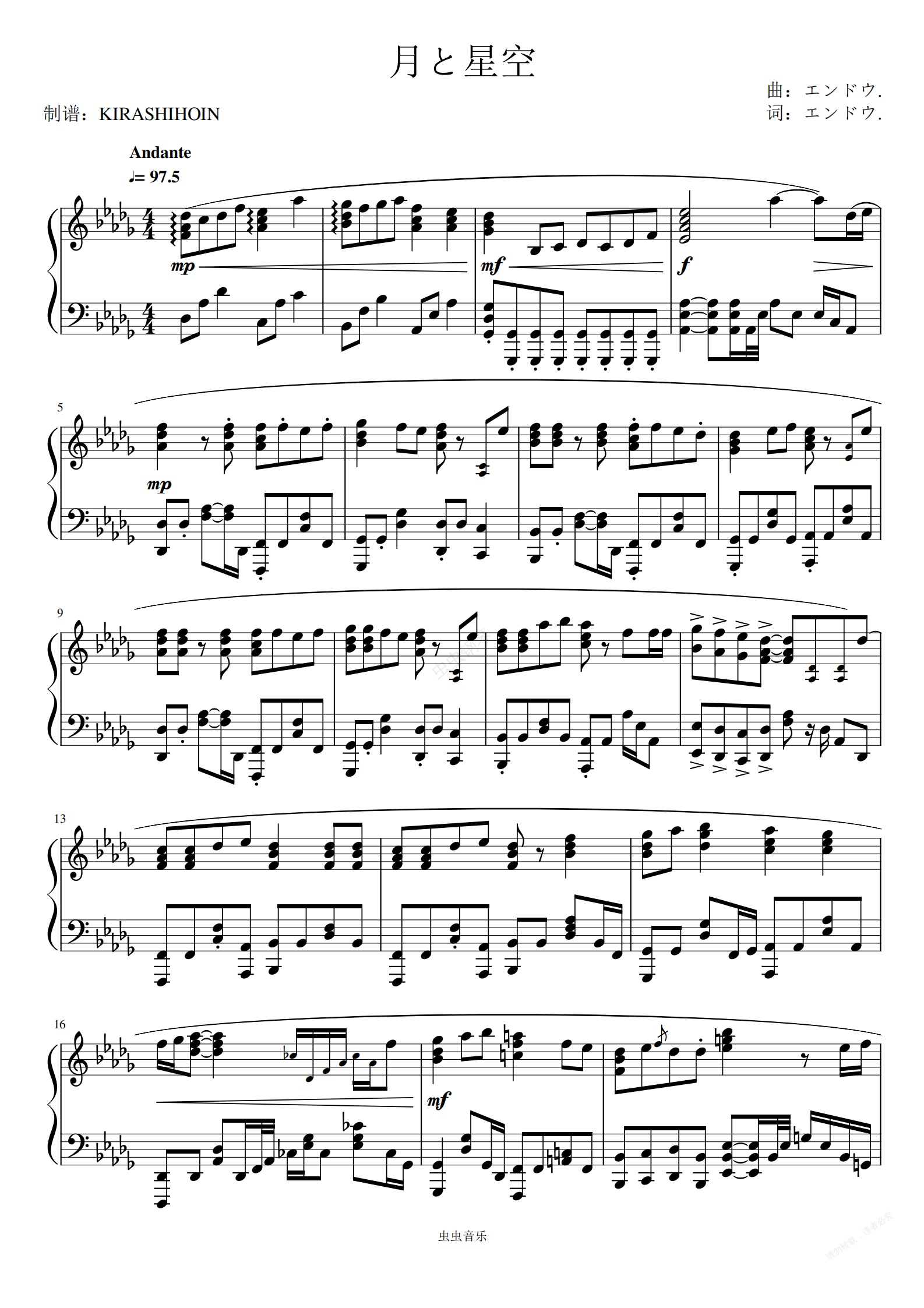 钢琴谱:月と星空(《总之就是非常可爱》ED)