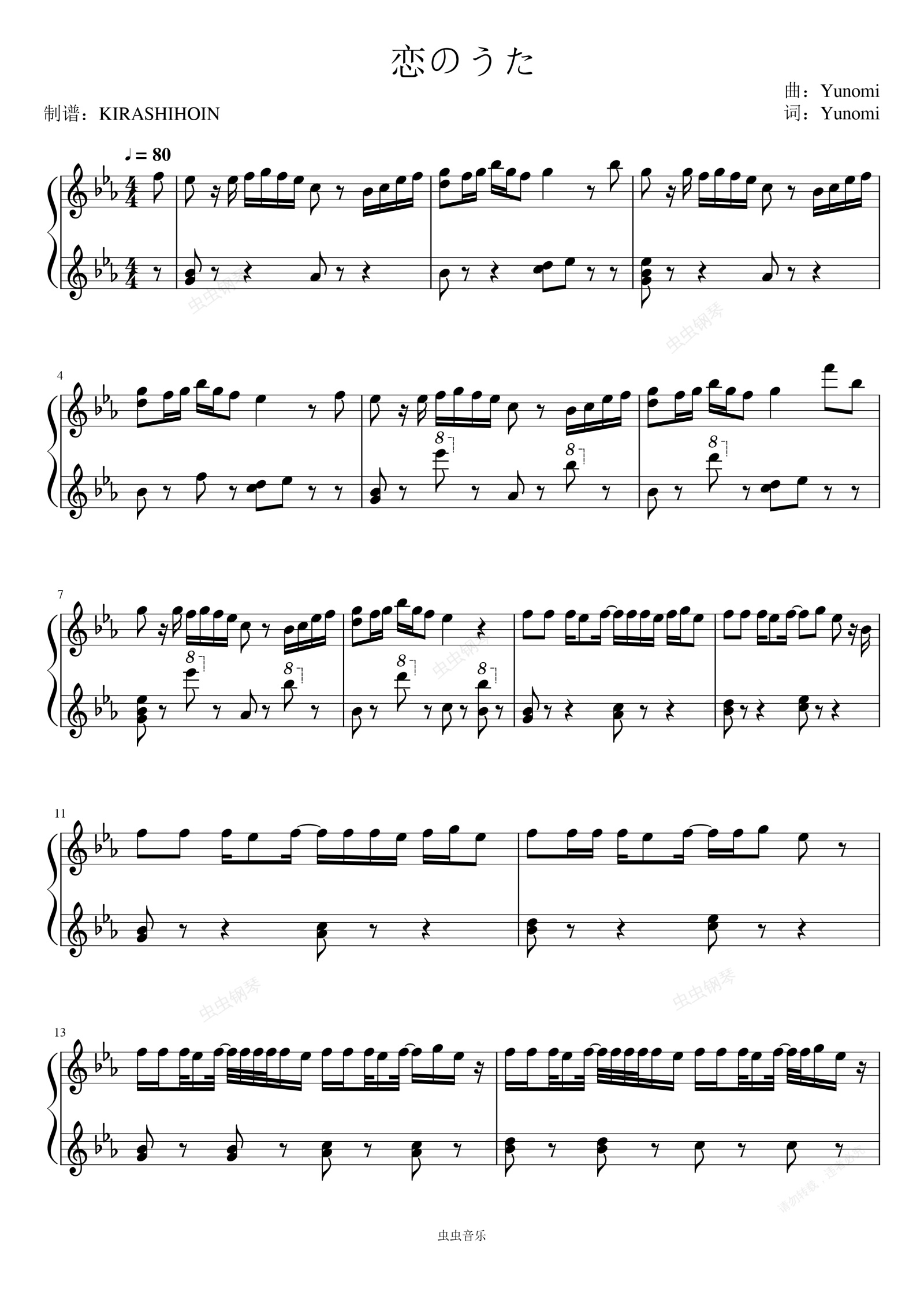 钢琴谱:恋のうた(《总之就是非常可爱》OP)