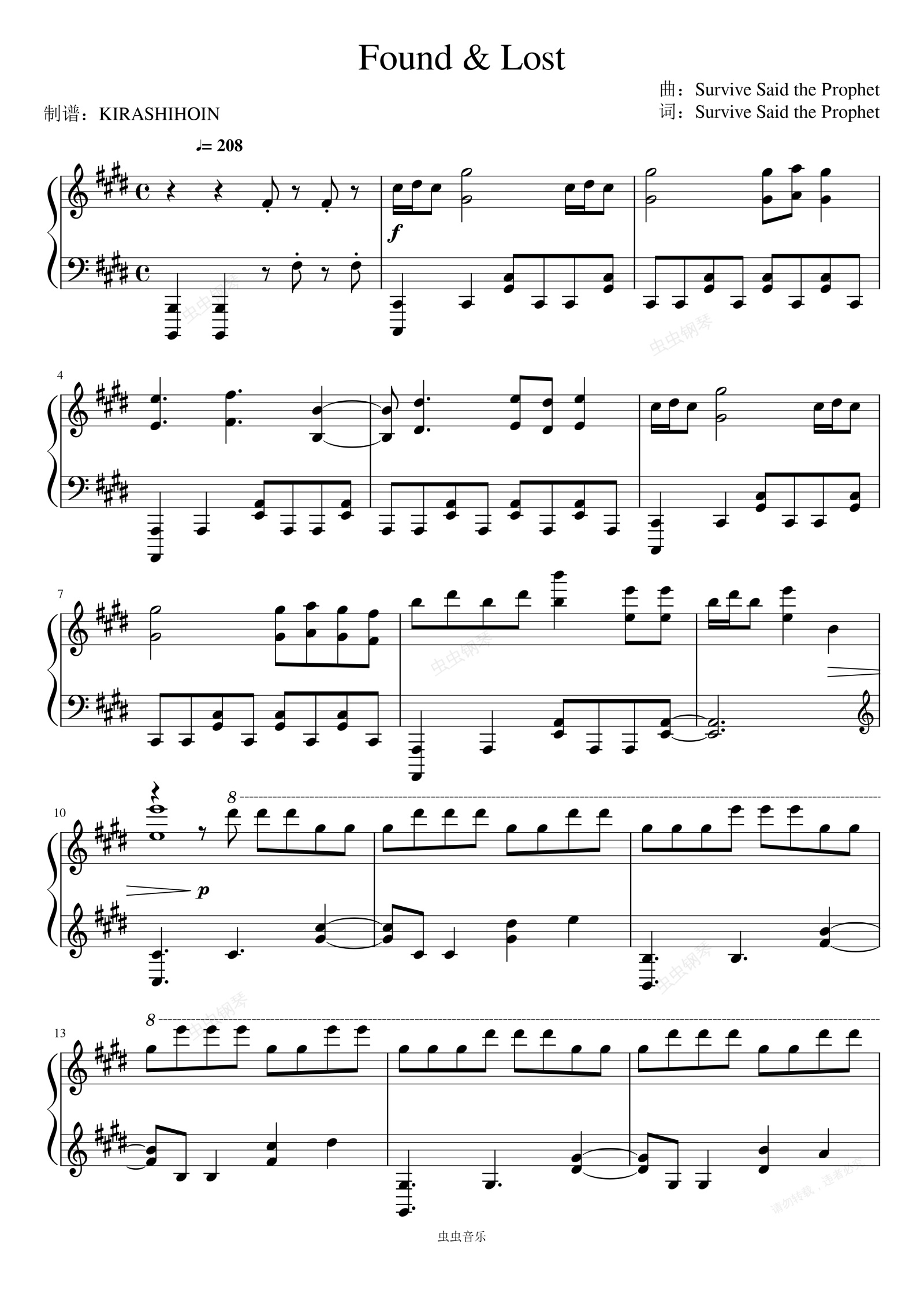 钢琴谱:Found & Lost(《战栗杀机/BANANA FISH》OP)