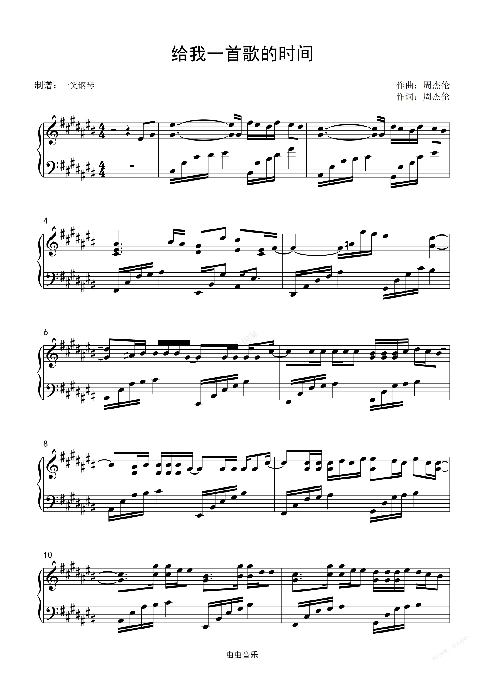 钢琴谱:给我一首歌的时间-周杰伦 【超级好听版】