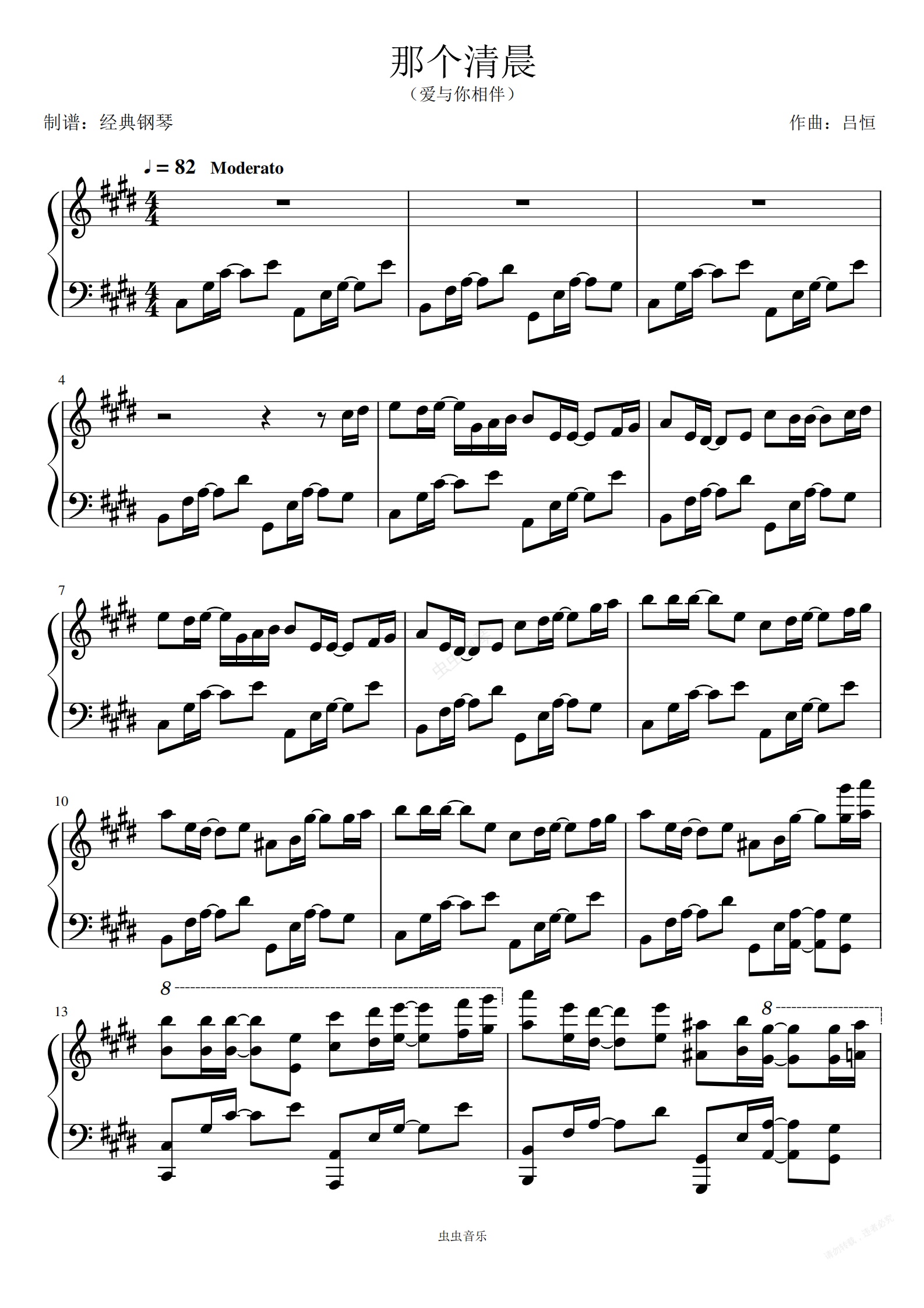 钢琴谱:那个清晨【原谱】