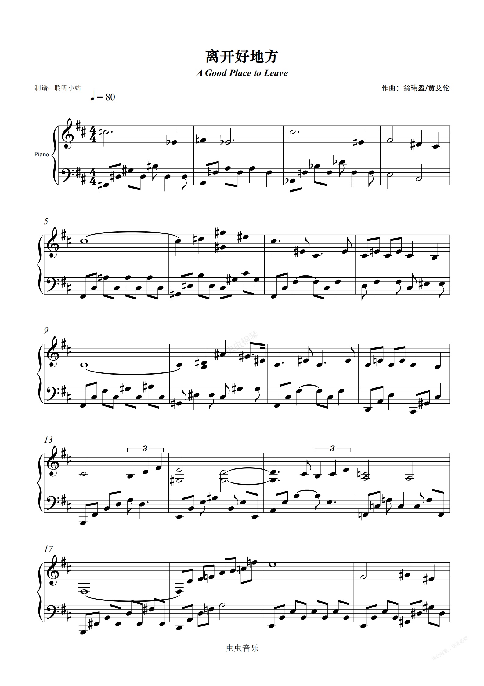 钢琴谱:离开好地方 (《春娇与志明》插曲)