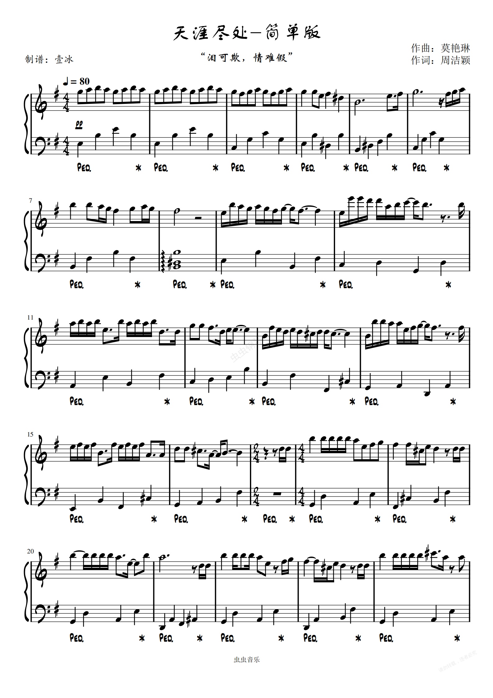 钢琴谱:天涯尽处《上阳赋》主题曲-简易版