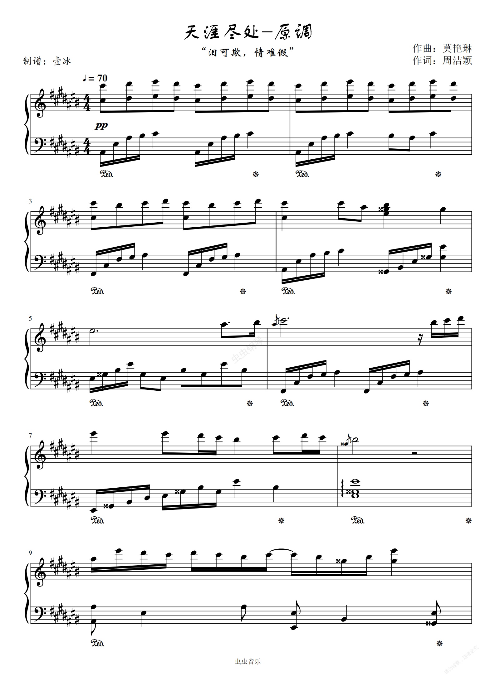 钢琴谱:天涯尽处《上阳赋》主题曲-原调版