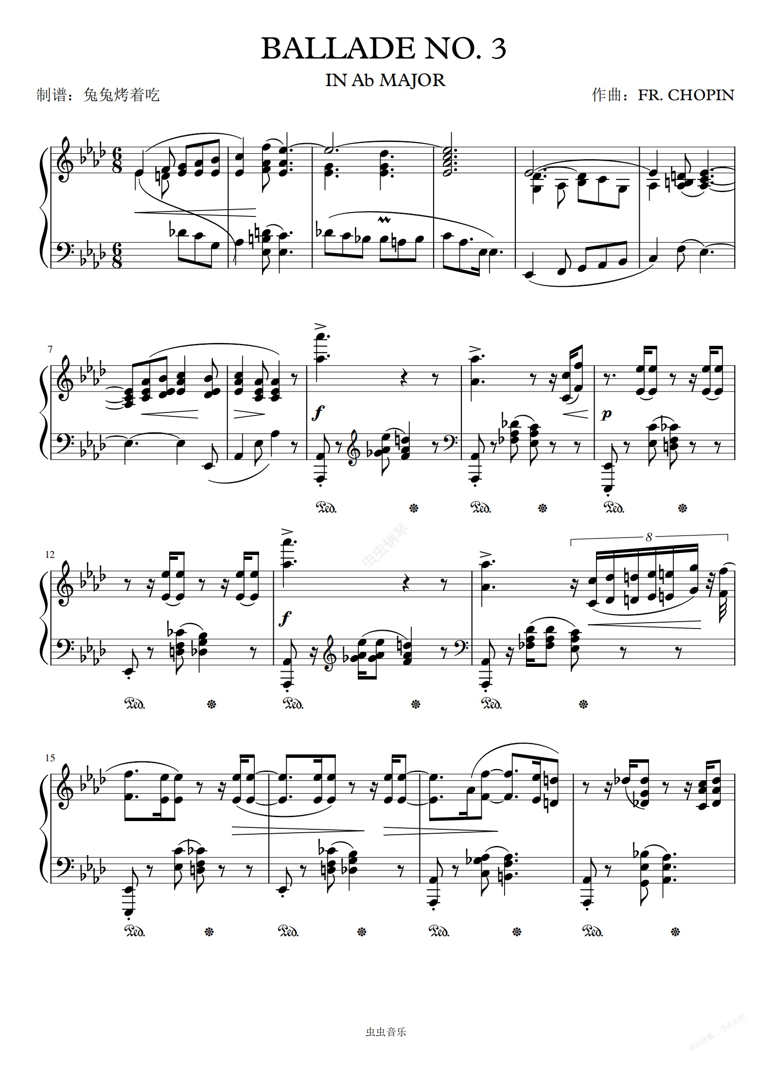 钢琴谱:肖邦第三叙事曲 Chopin Ballade No.3 Op.47