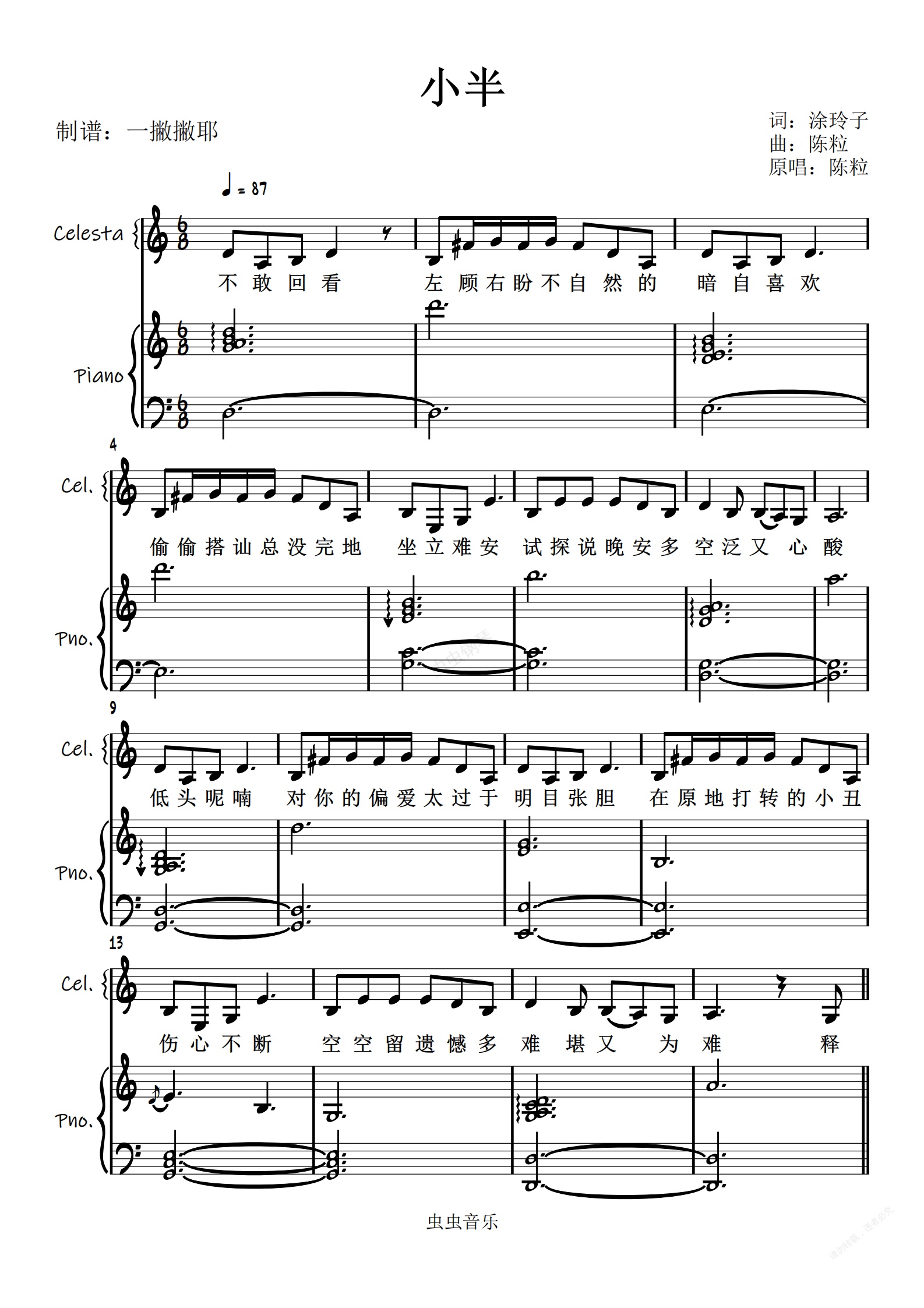 钢琴谱:小半【弹唱谱】陈粒「一撇撇耶」