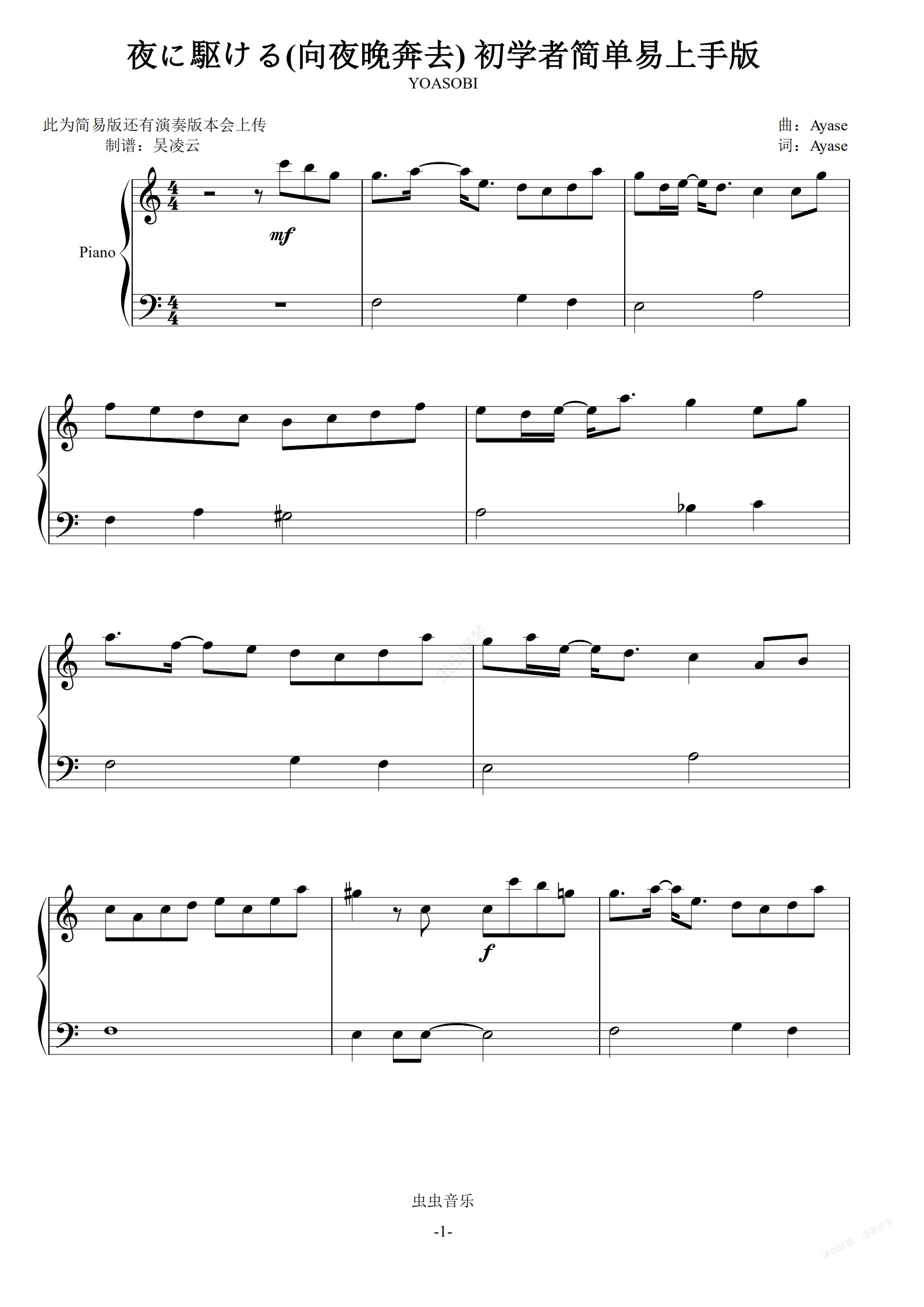 钢琴谱:夜に駆ける(奔向黑夜) YOASOBI 初学者简单易上手版 吴凌云制作版