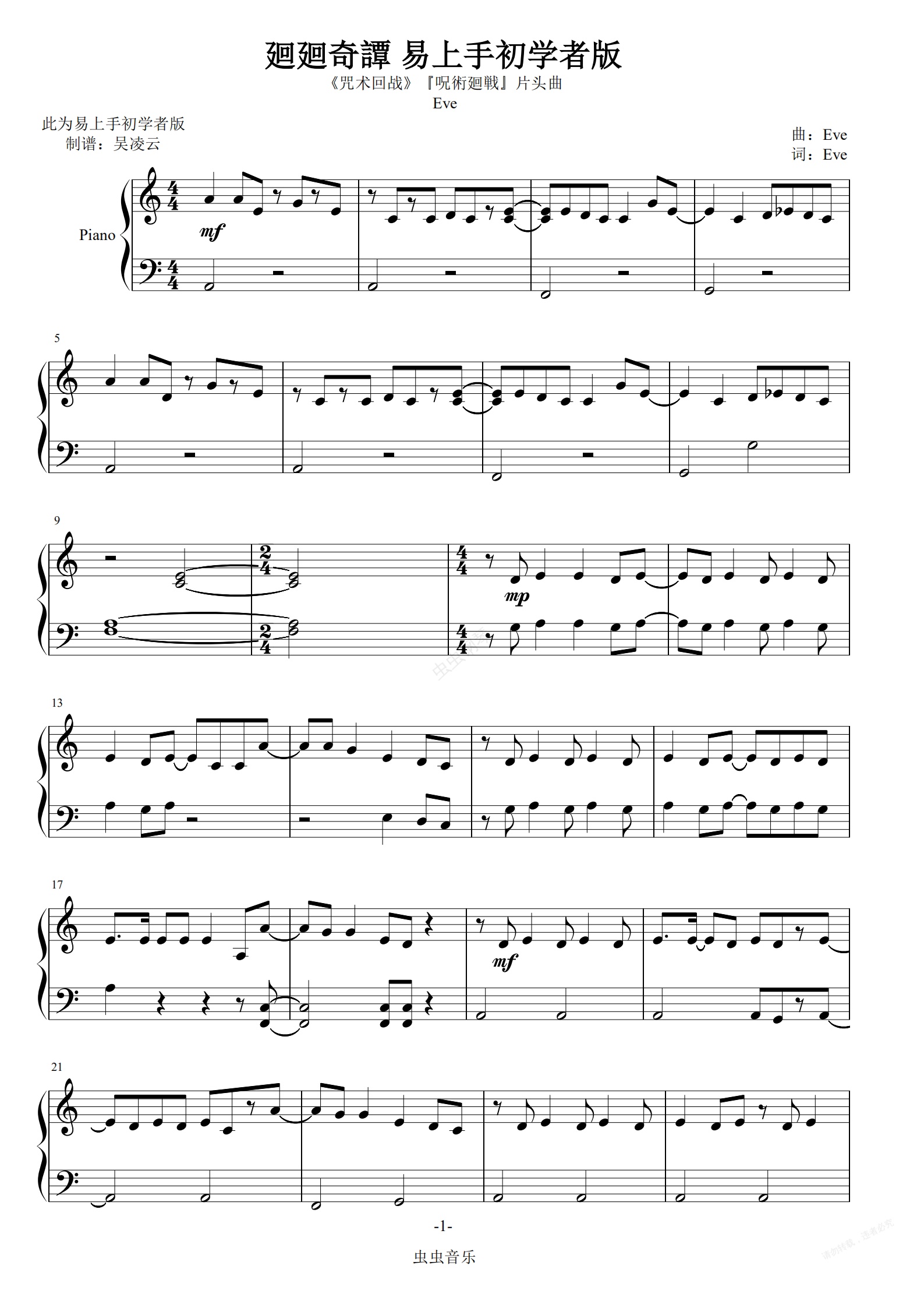 钢琴谱:廻廻奇譚 易上手初学者版 《咒术回战》『呪術廻戦』片头曲OP 吴凌云制作版