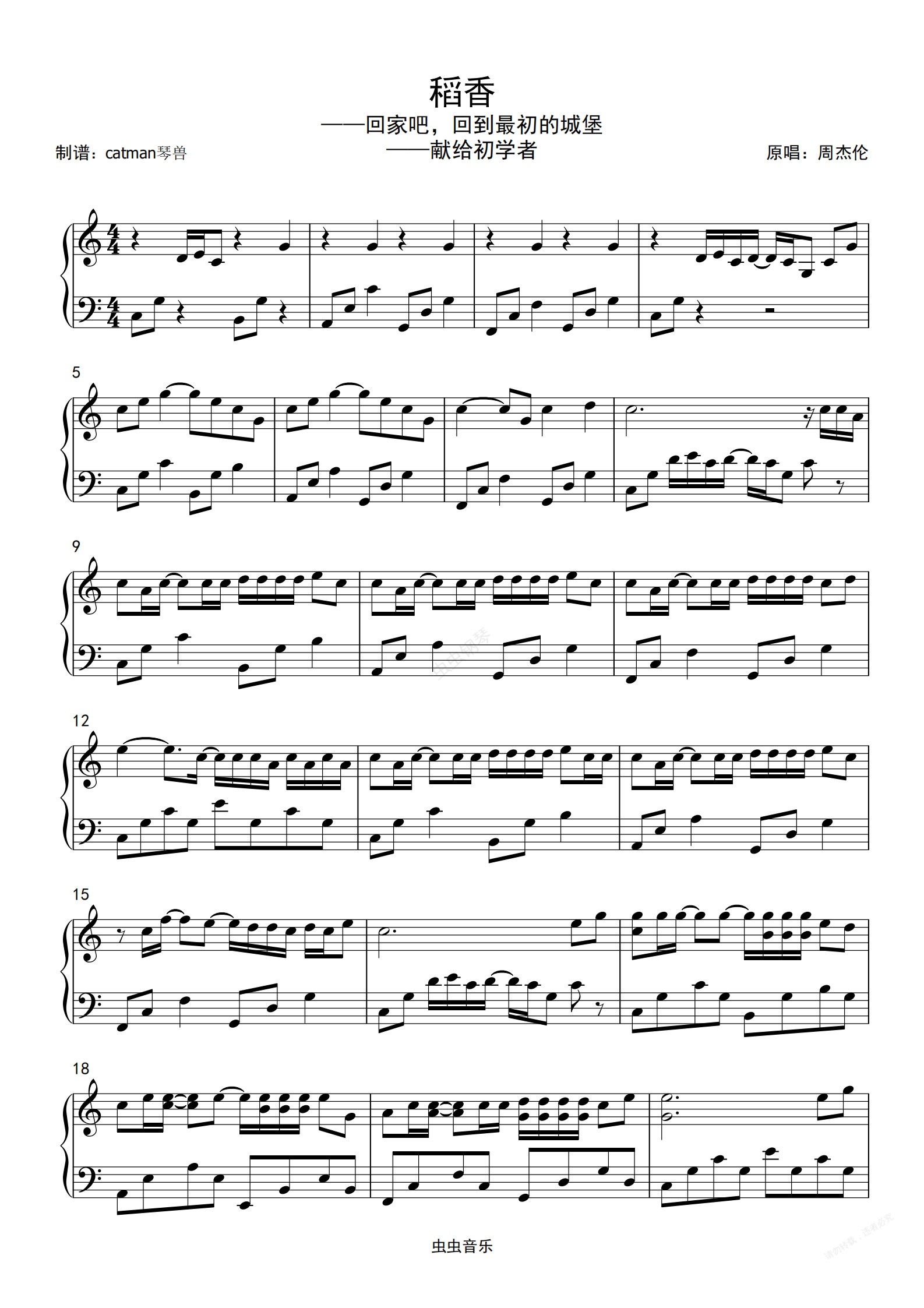钢琴谱:稻香-周杰伦-琴兽简单版