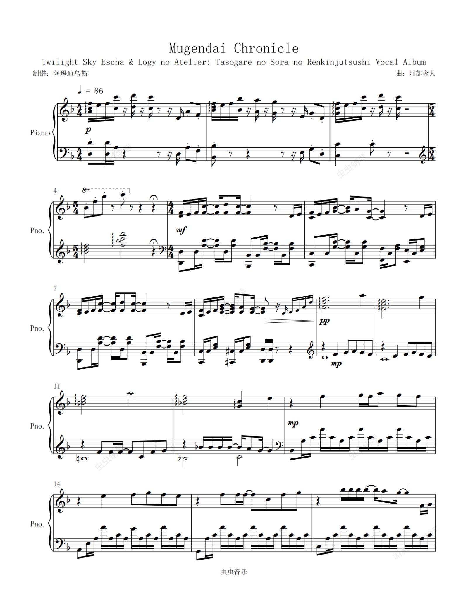 钢琴谱:爱丝卡与罗吉的工作室 黄昏之空的炼金术士 < Mugendai Chronicle > 原调高还原完整版本