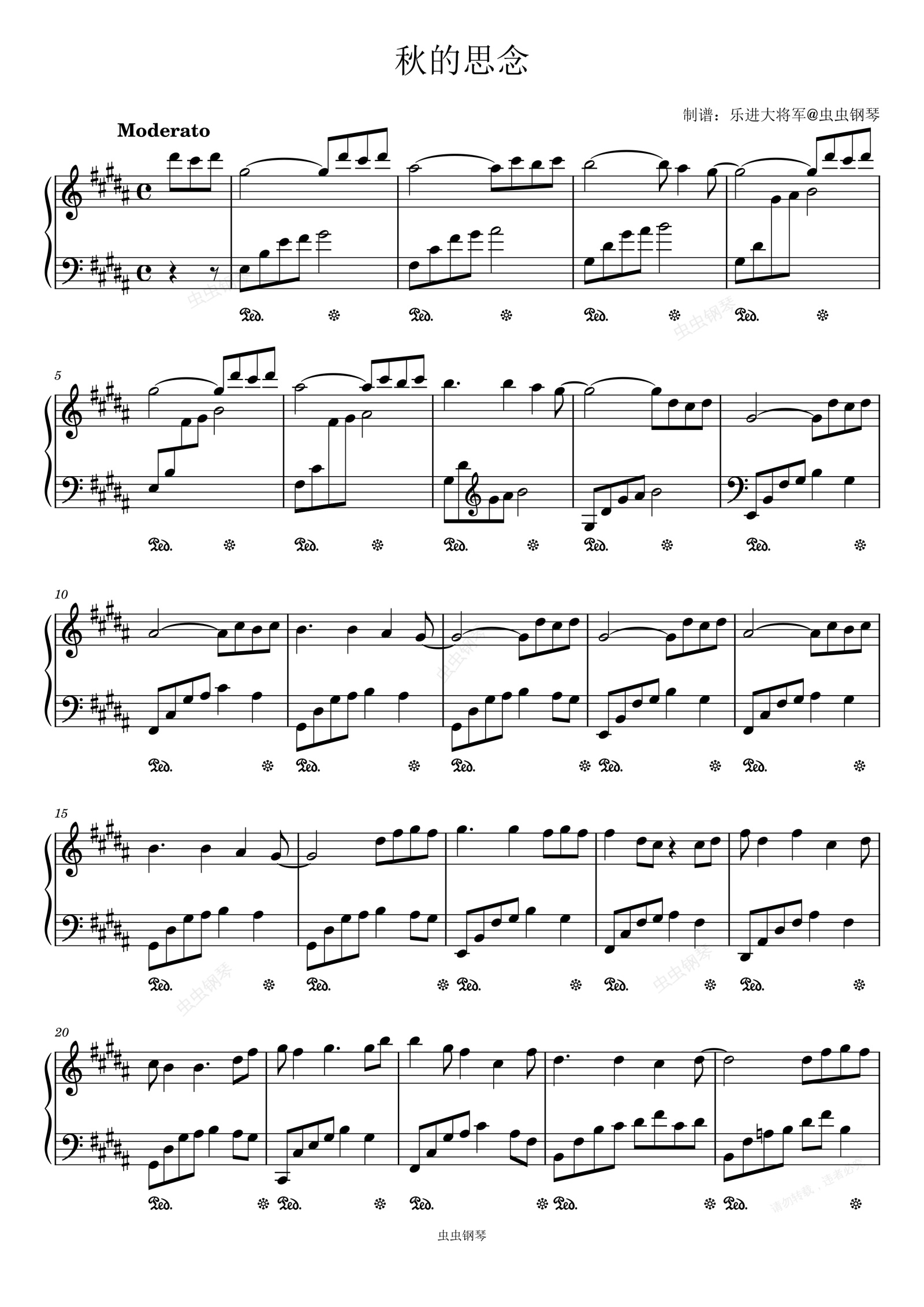 钢琴谱:《秋的思念》原调准确版