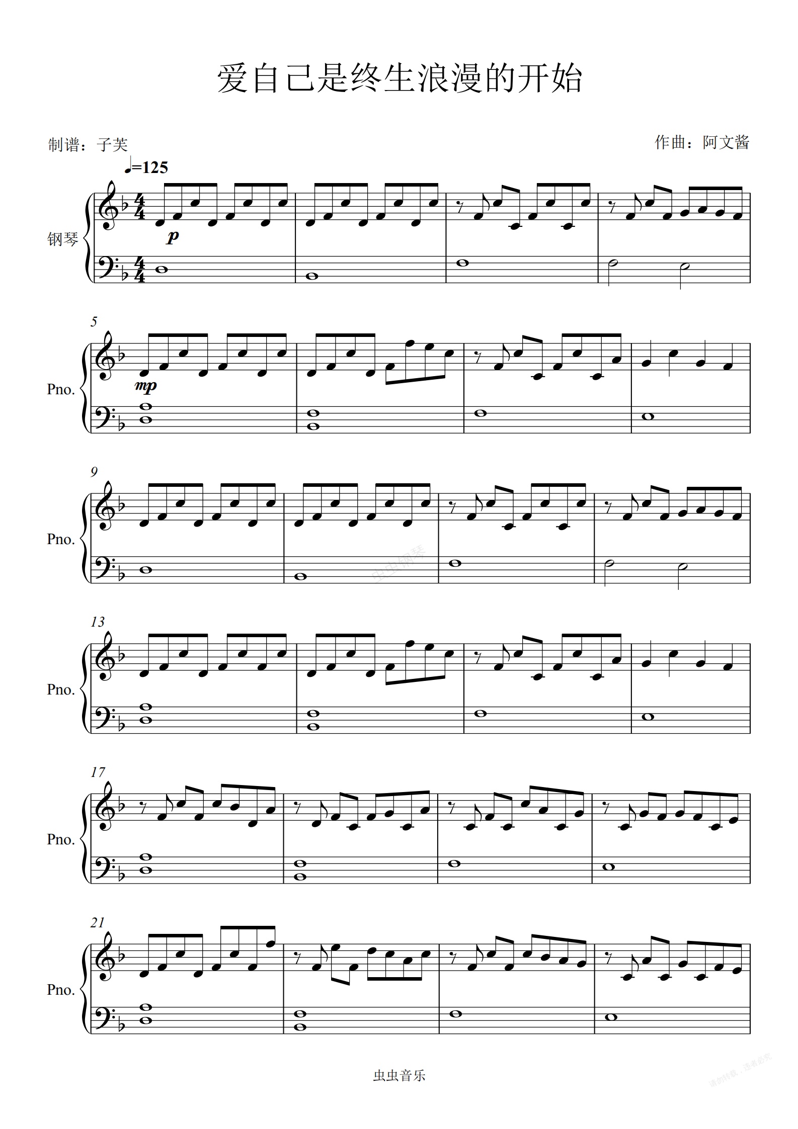 钢琴谱:《爱自己是终生浪漫的开始》-阿文酱-钢琴独奏版