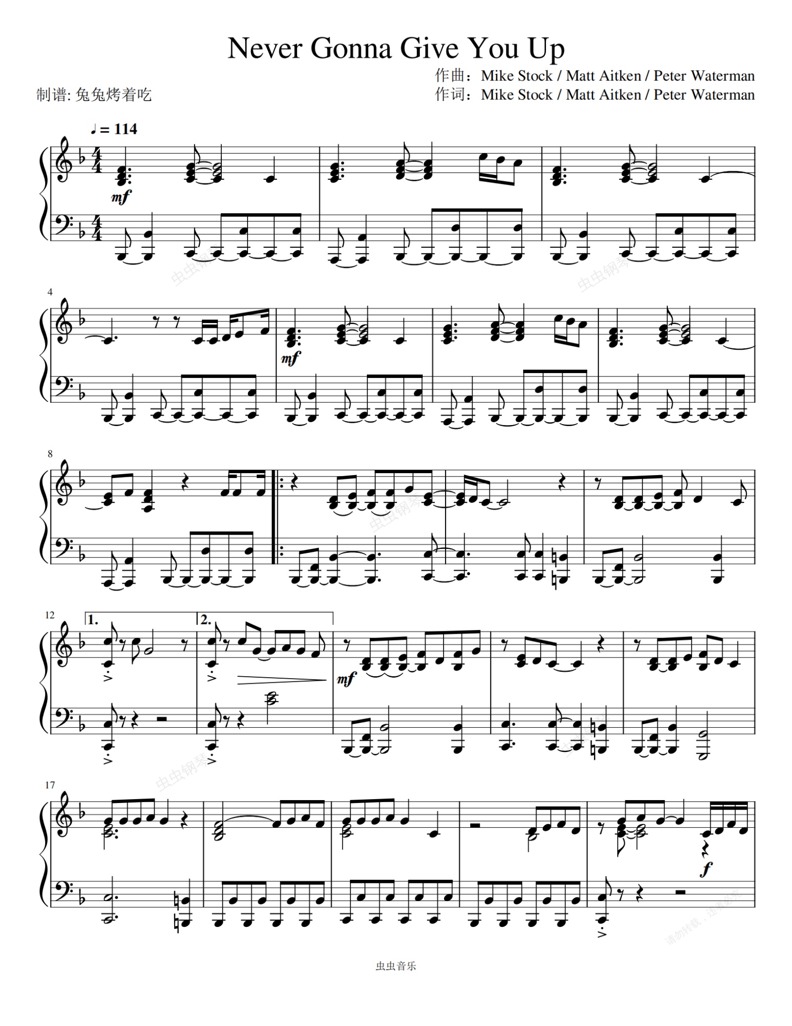 钢琴谱:《Never Gonna Give You Up》 迪斯科风格