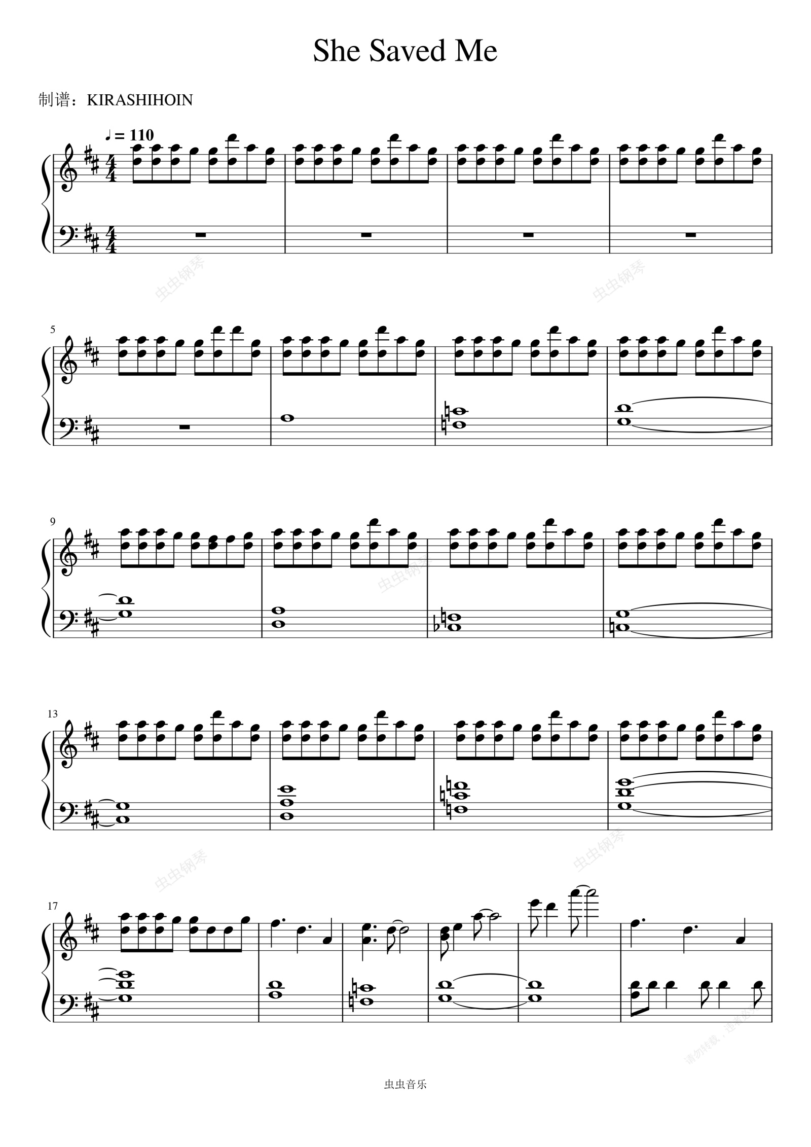 钢琴谱:She Saved Me(《没落要塞》插曲)