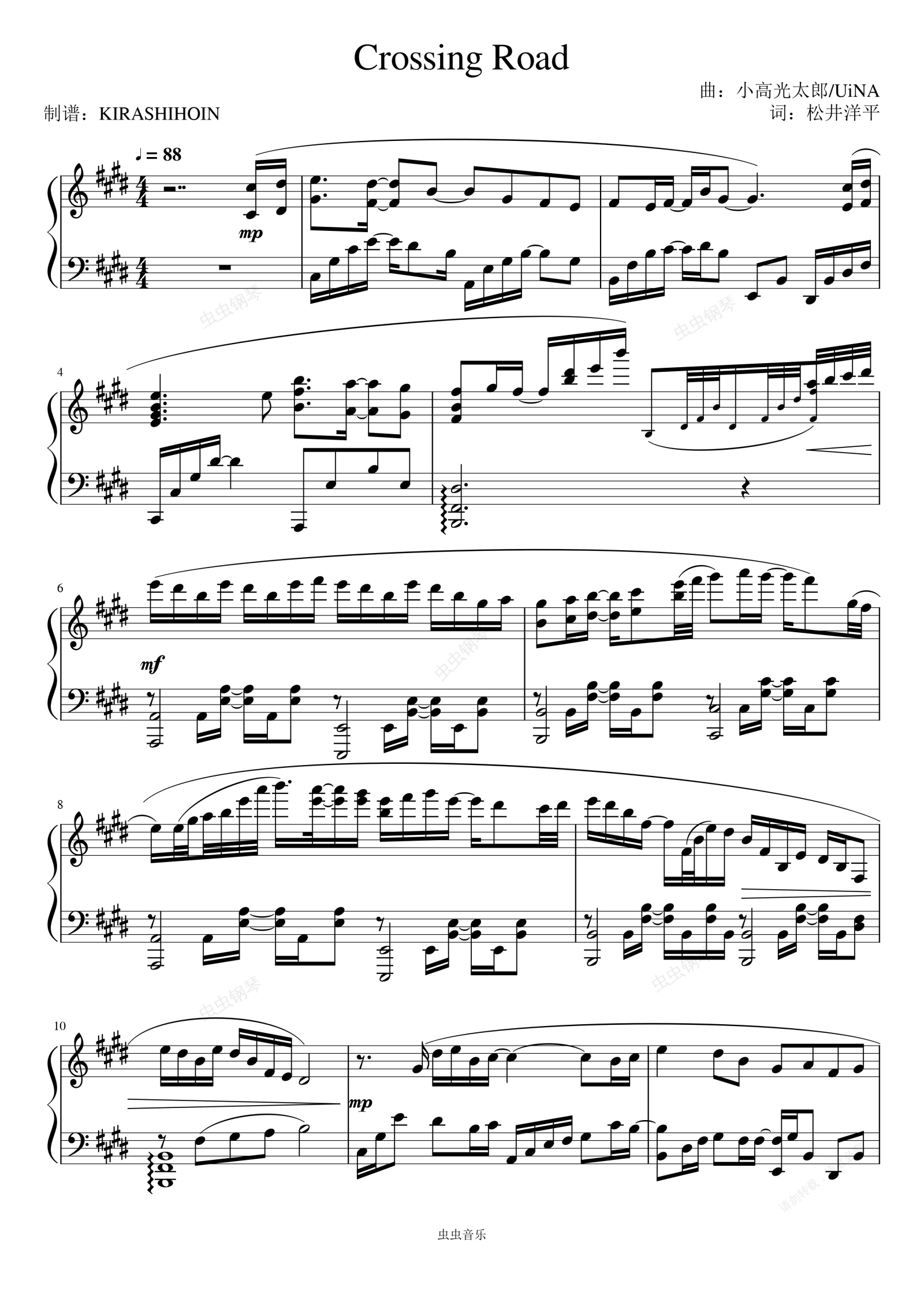 钢琴谱:Crossing Road(《食戟之灵 豪之皿》ED)