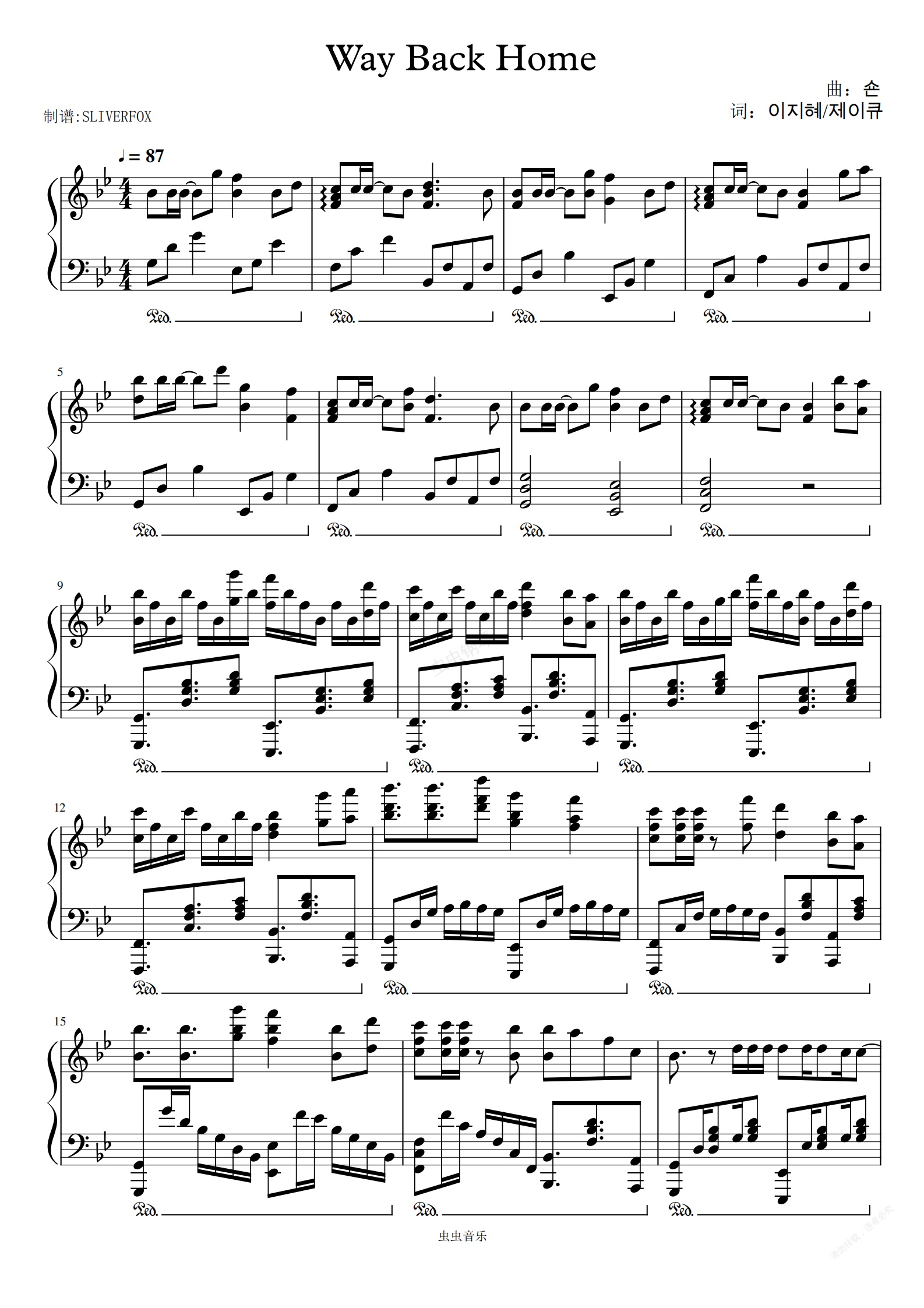 钢琴谱:《Way Back Home》Shaun抖音嗨曲困难版