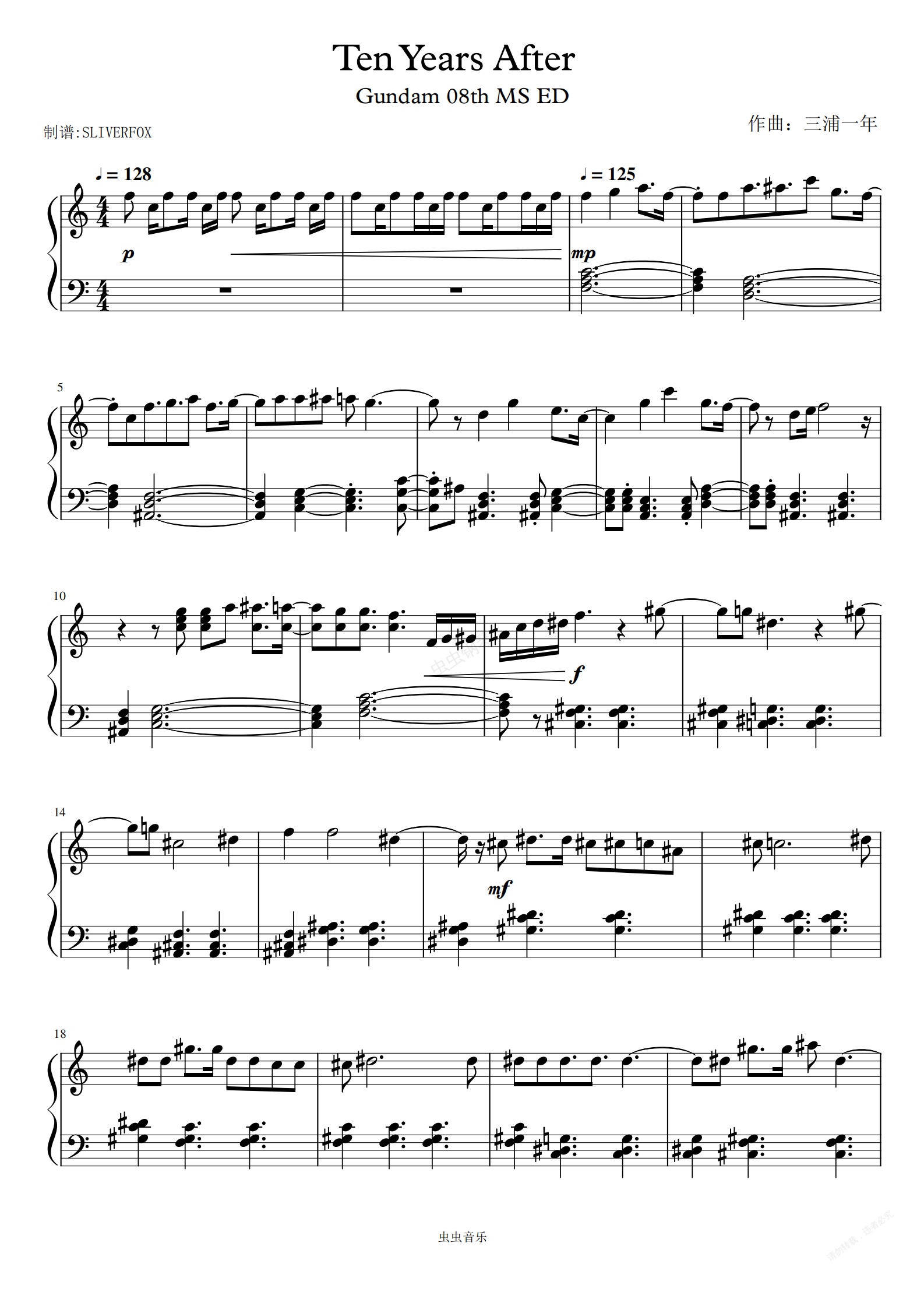 钢琴谱:《Ten Years After》 高达08MS小队片尾曲