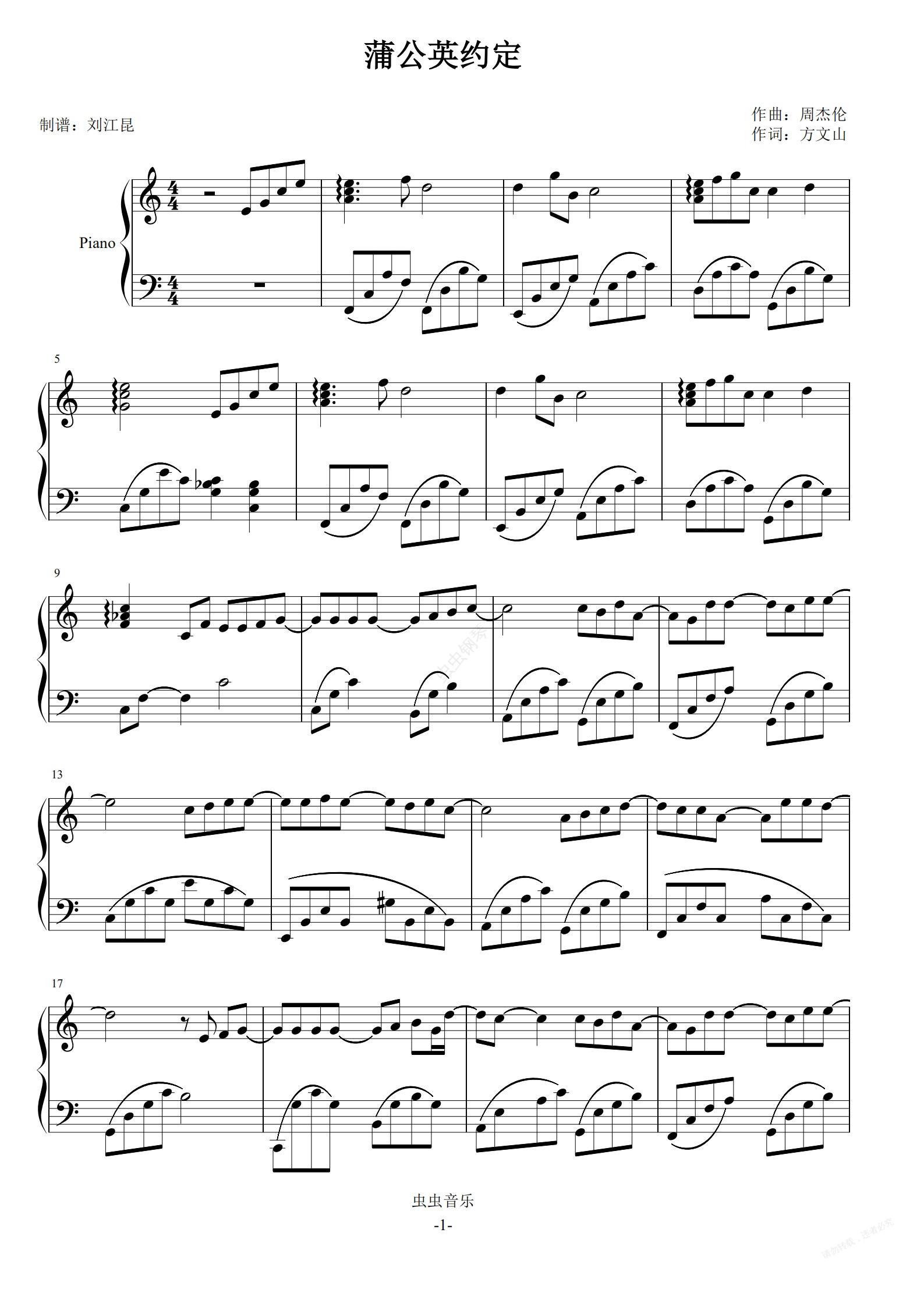 钢琴谱:蒲公英的约定(成人钢琴版)