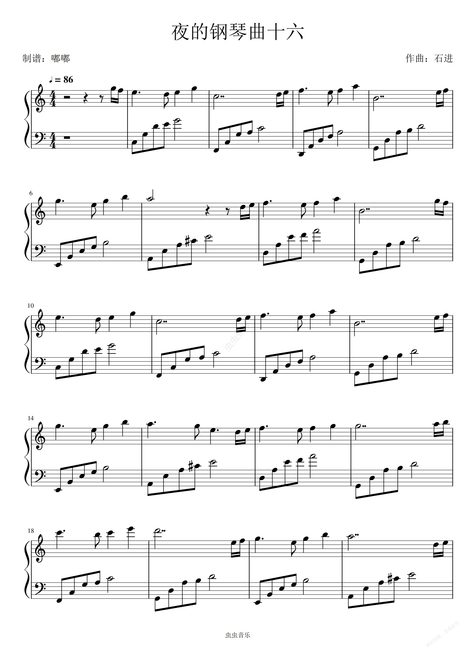 钢琴谱:夜的钢琴曲十六(完美C调版)