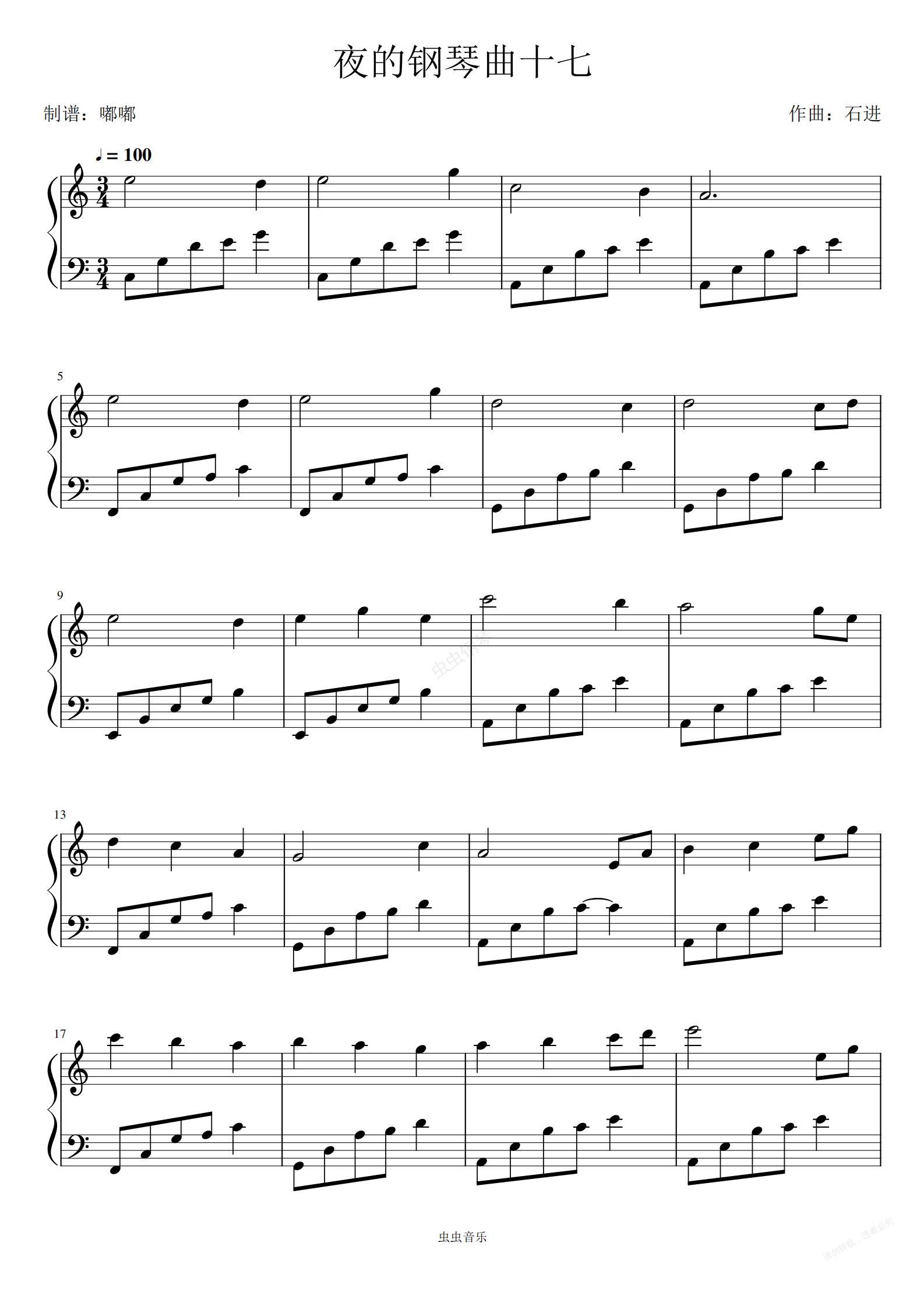 钢琴谱:夜的钢琴曲十七(完美C调版)