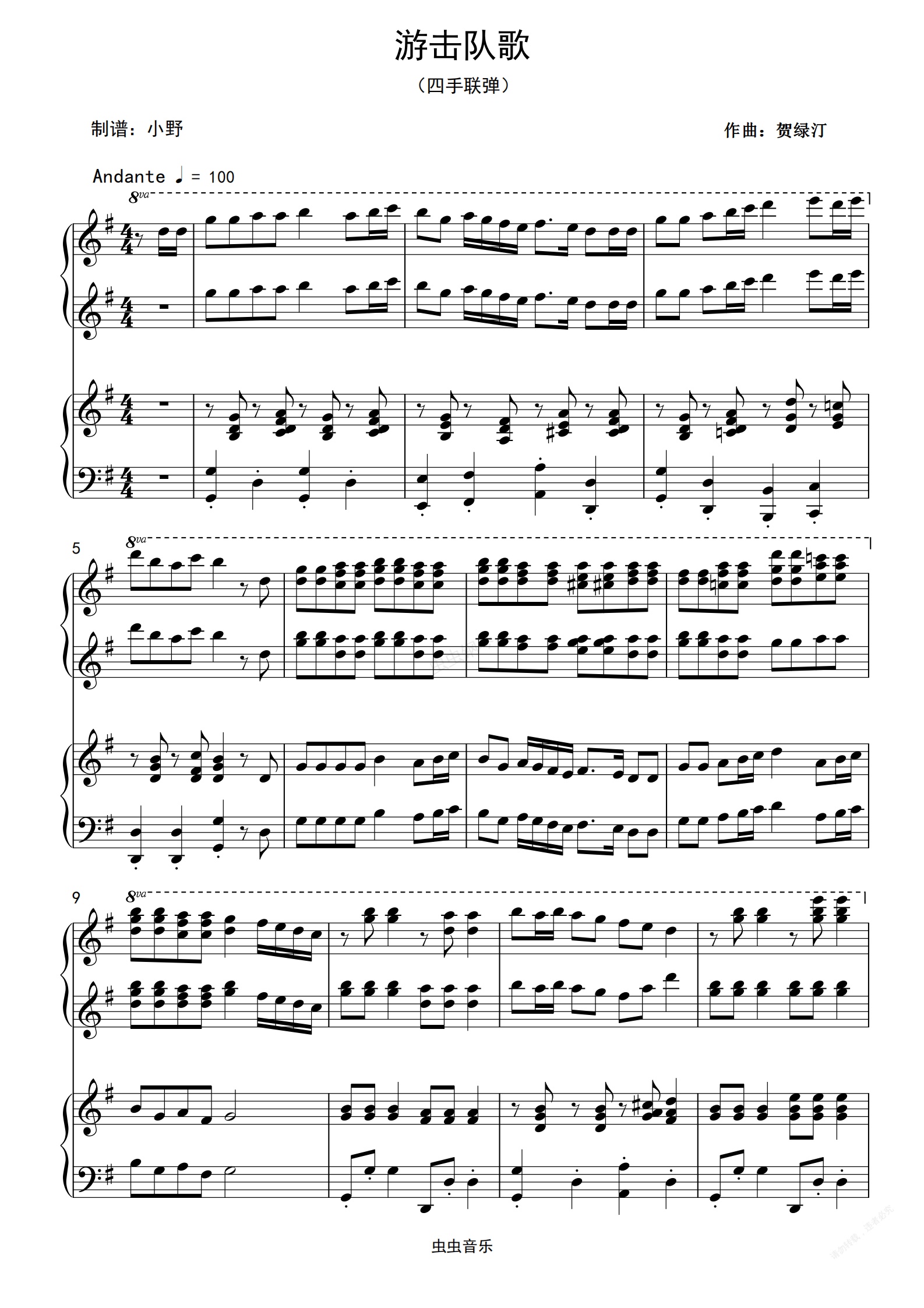 钢琴谱:游击队歌(四手联弹)