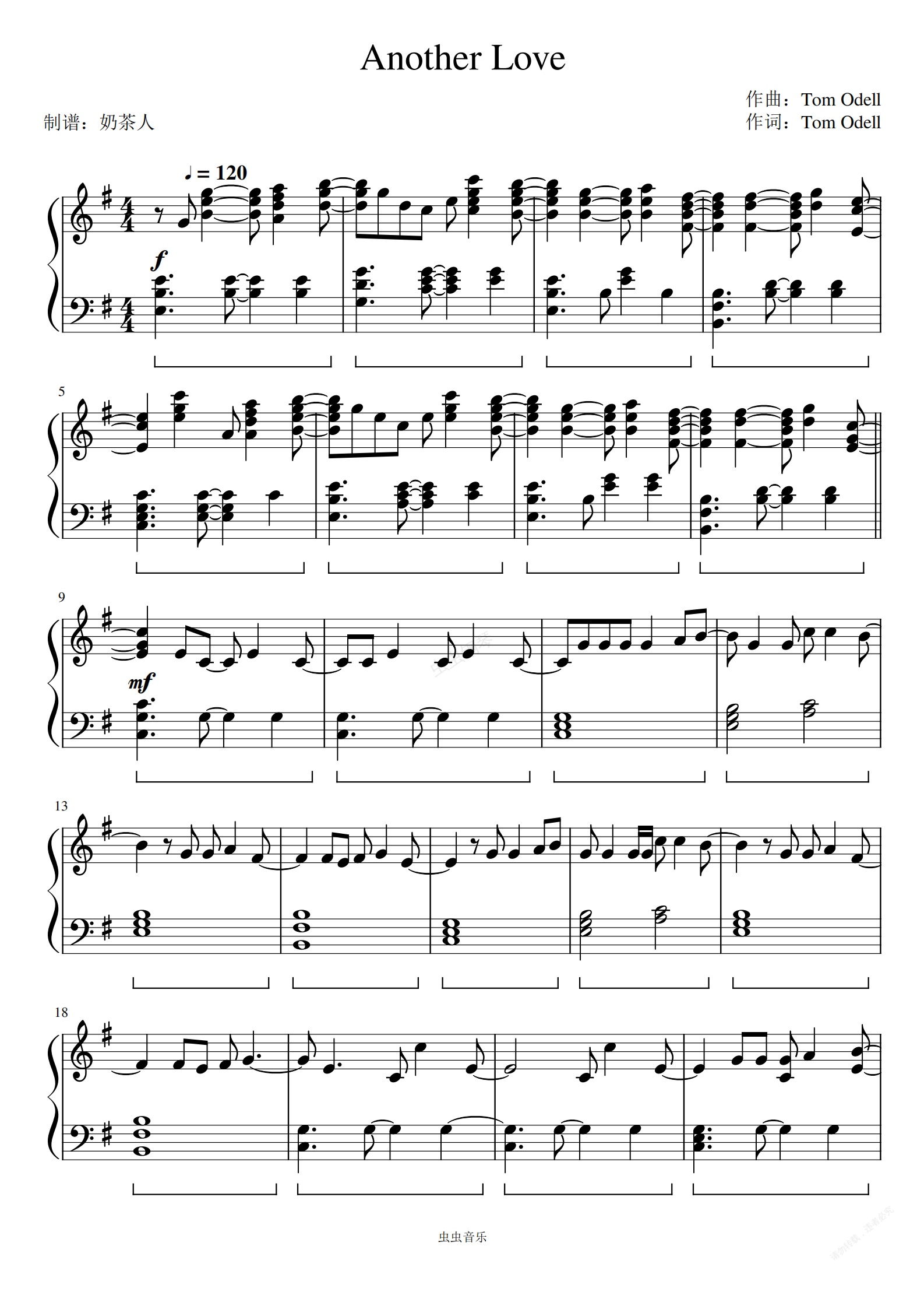 钢琴谱:《Another Love》美剧《吸血鬼日记》插曲 唯美