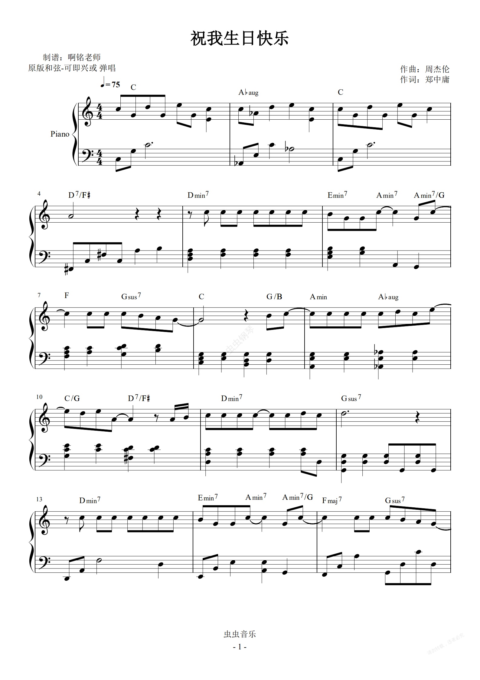 钢琴谱:祝我生日快乐 C调完美弹奏 原版和弦