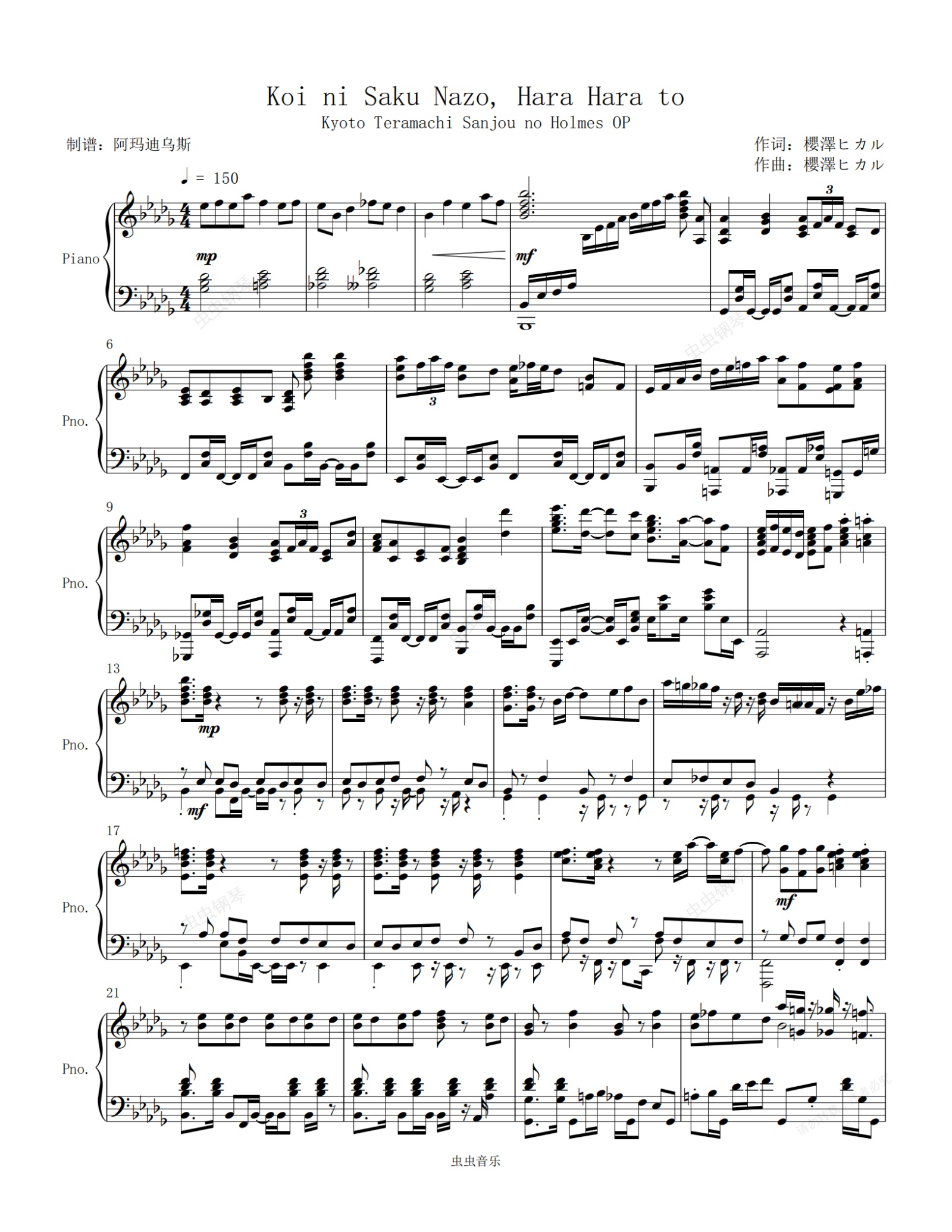 钢琴谱:京都寺町三条商店街的福尔摩斯 OP < 恋に咲く謎、はらはらと > 恋爱盛开之谜、飞舞飘落 原调高还原完整版本