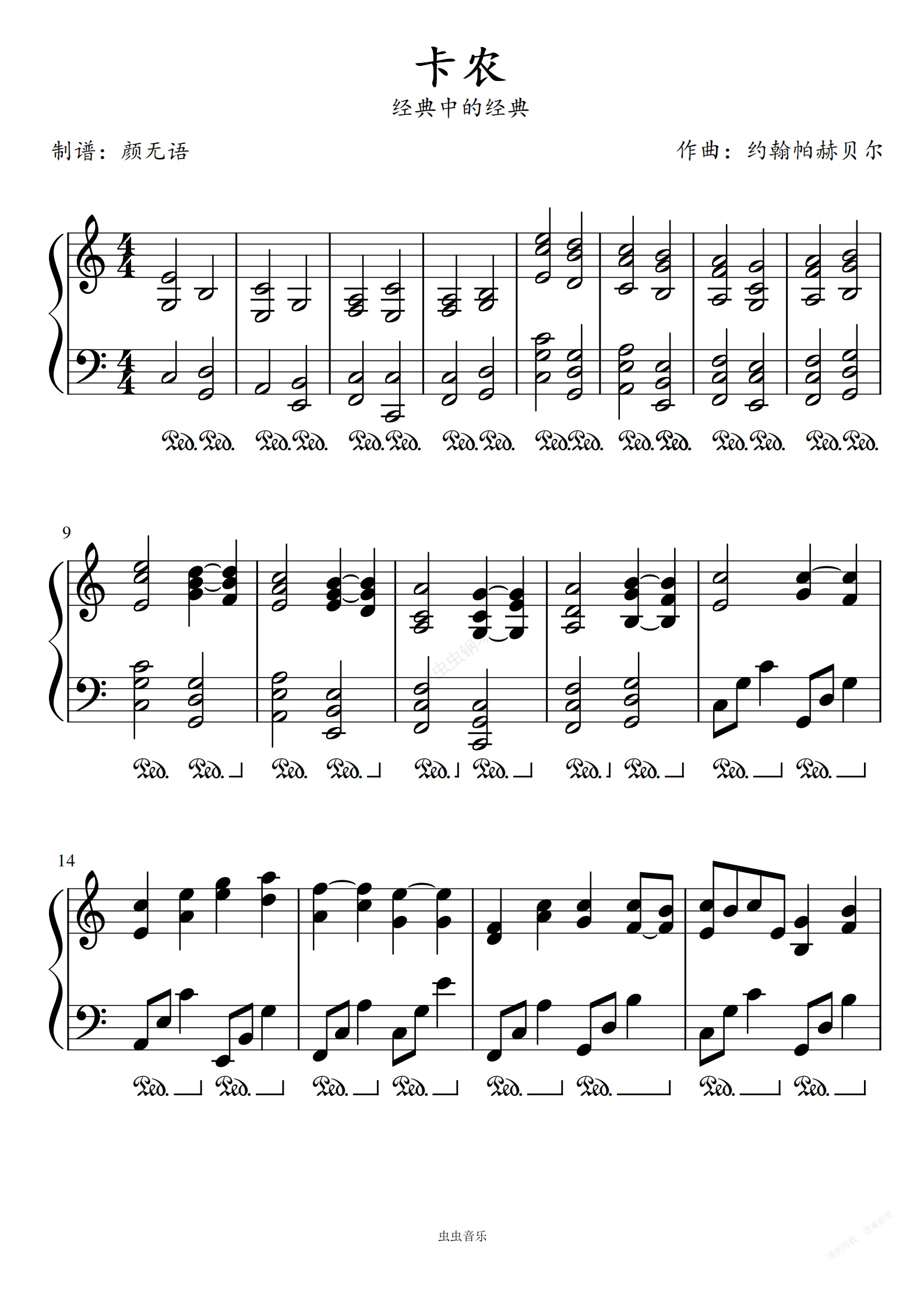 钢琴谱:卡农  C调  经典中的战斗机