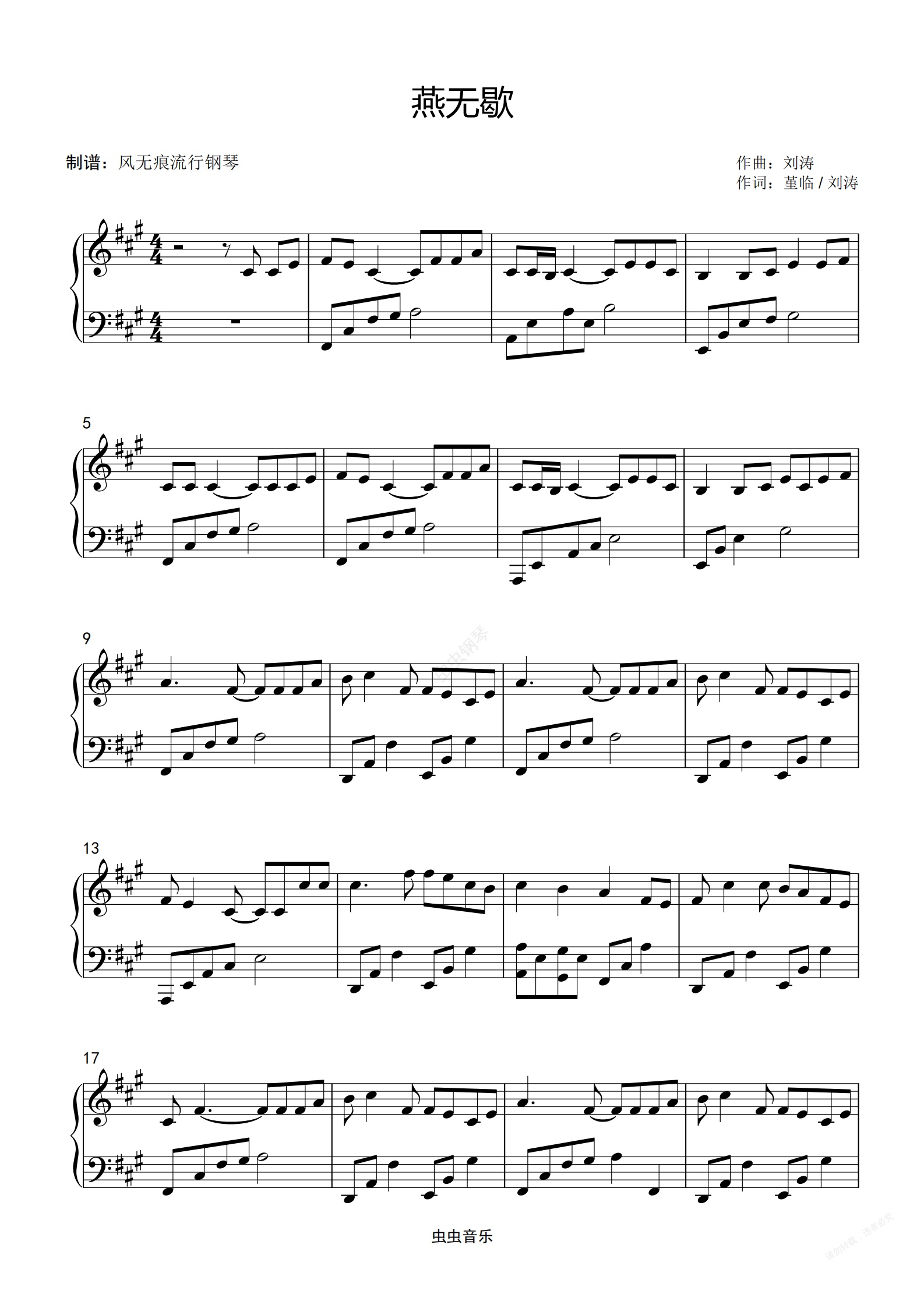 钢琴谱:燕无歇-蒋雪儿〖简易动听〗