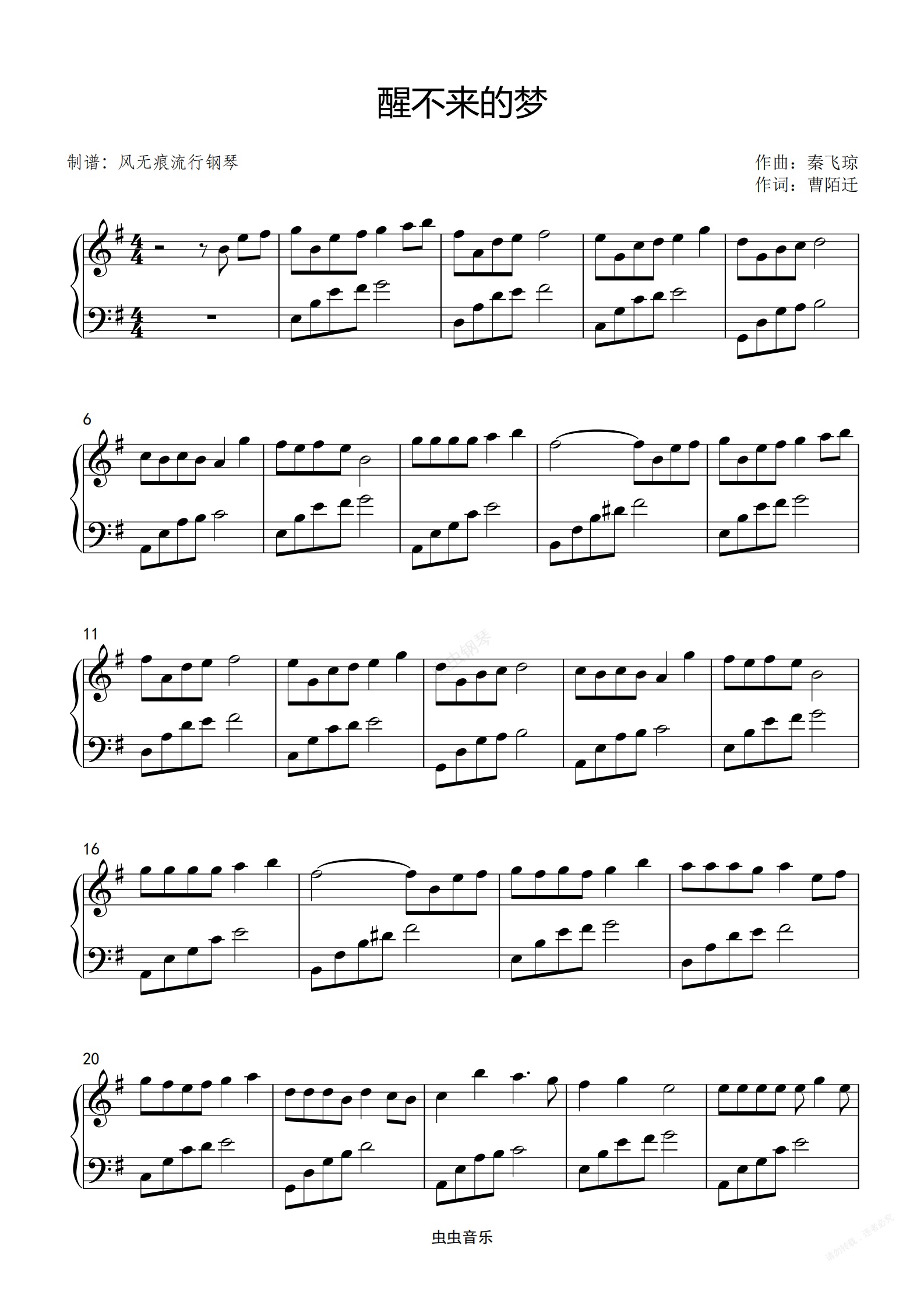 钢琴谱:醒不来的梦-回小仙〖简易动听〗