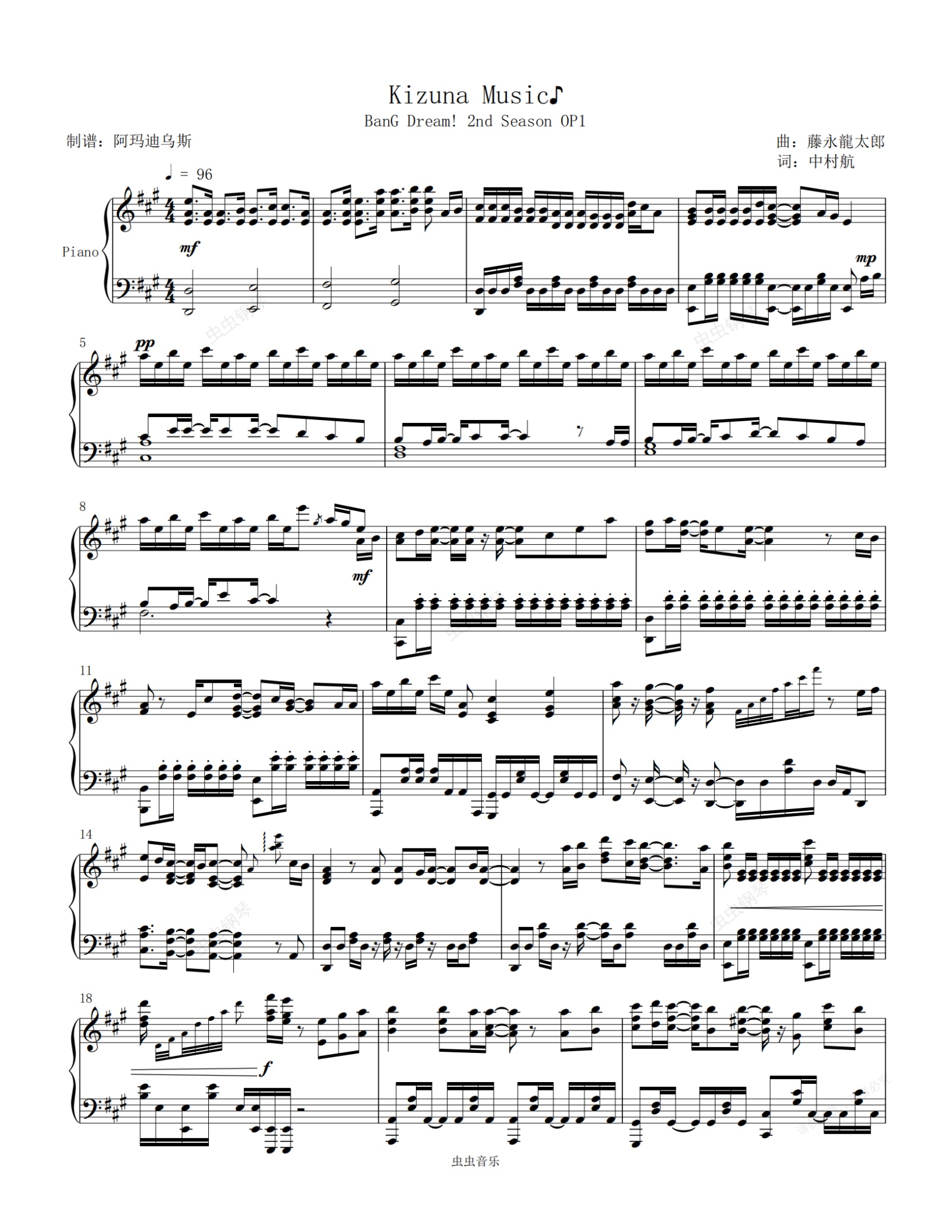 钢琴谱:BanG Dream! OP2 < キズナミュージック♪ > Kizuna Music♪ 原调高还原完整版本