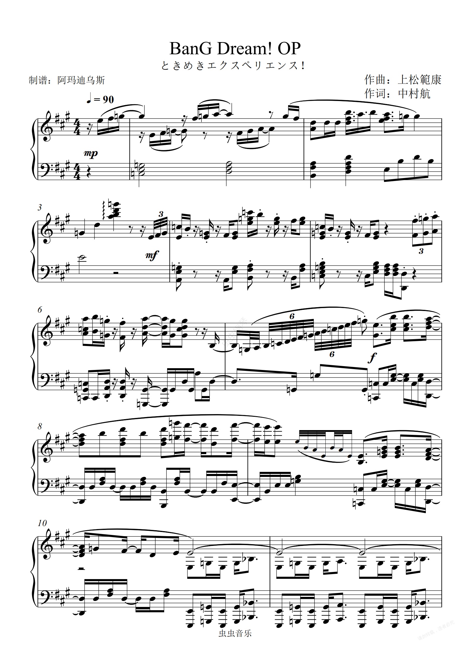 钢琴谱:BanG Dream! OP1 < ときめきエクスペリエンス!> 心跳体验!原调高还原完整版本