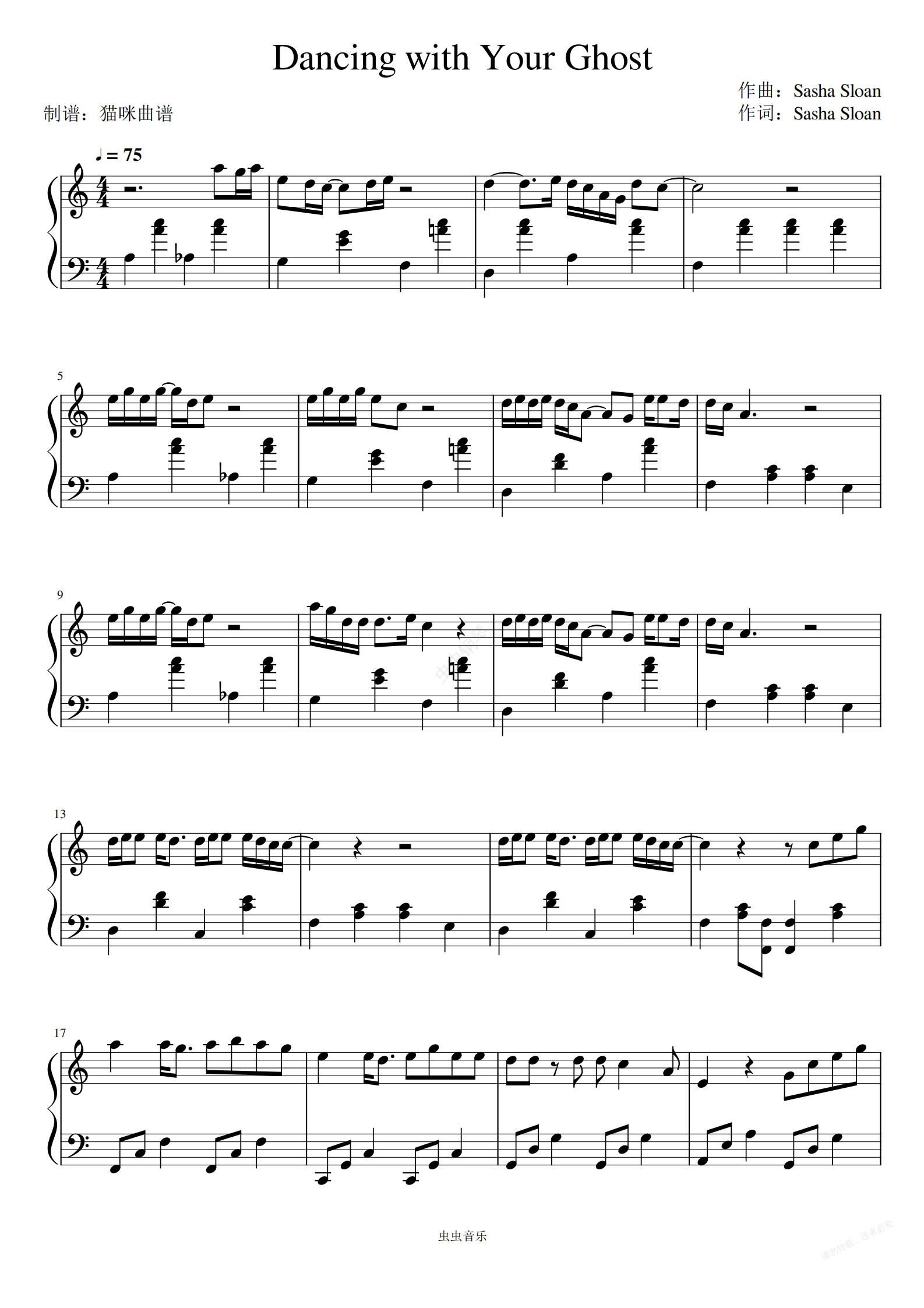 钢琴谱:Dancing With Your Ghost(C调) - Sasha Sloan