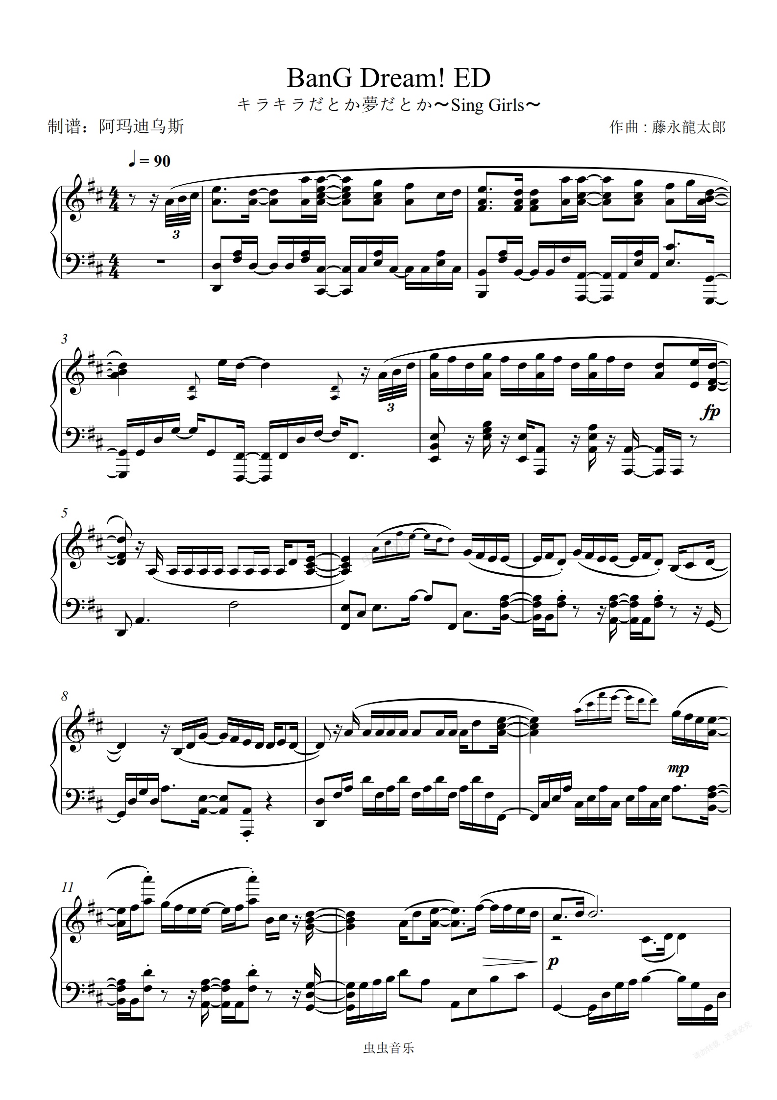钢琴谱:BanG Dream! ED < キラキラだとか夢だとか〜Sing Girls〜 >