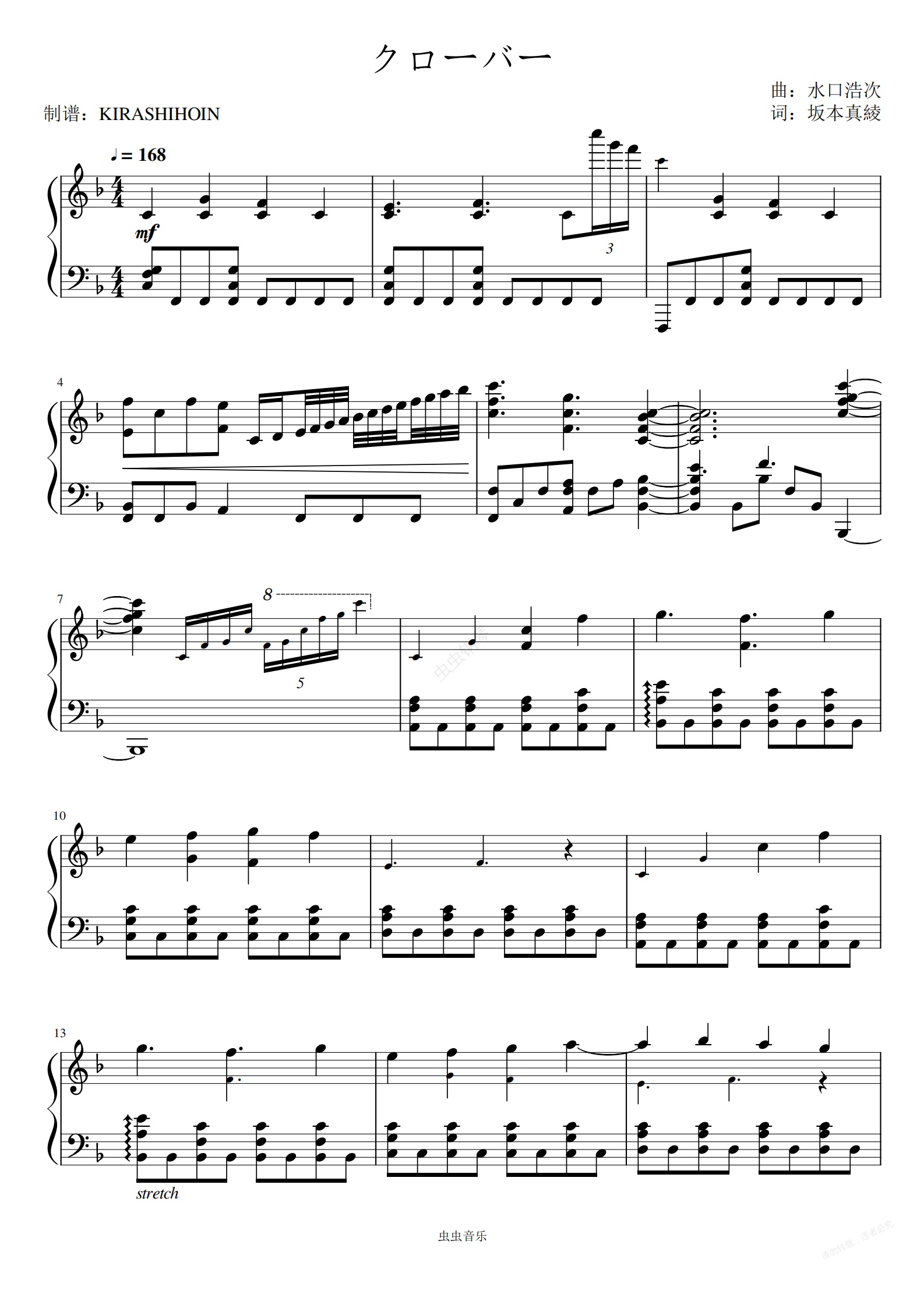 钢琴谱:クローバー(《阿尔蒂》OP)