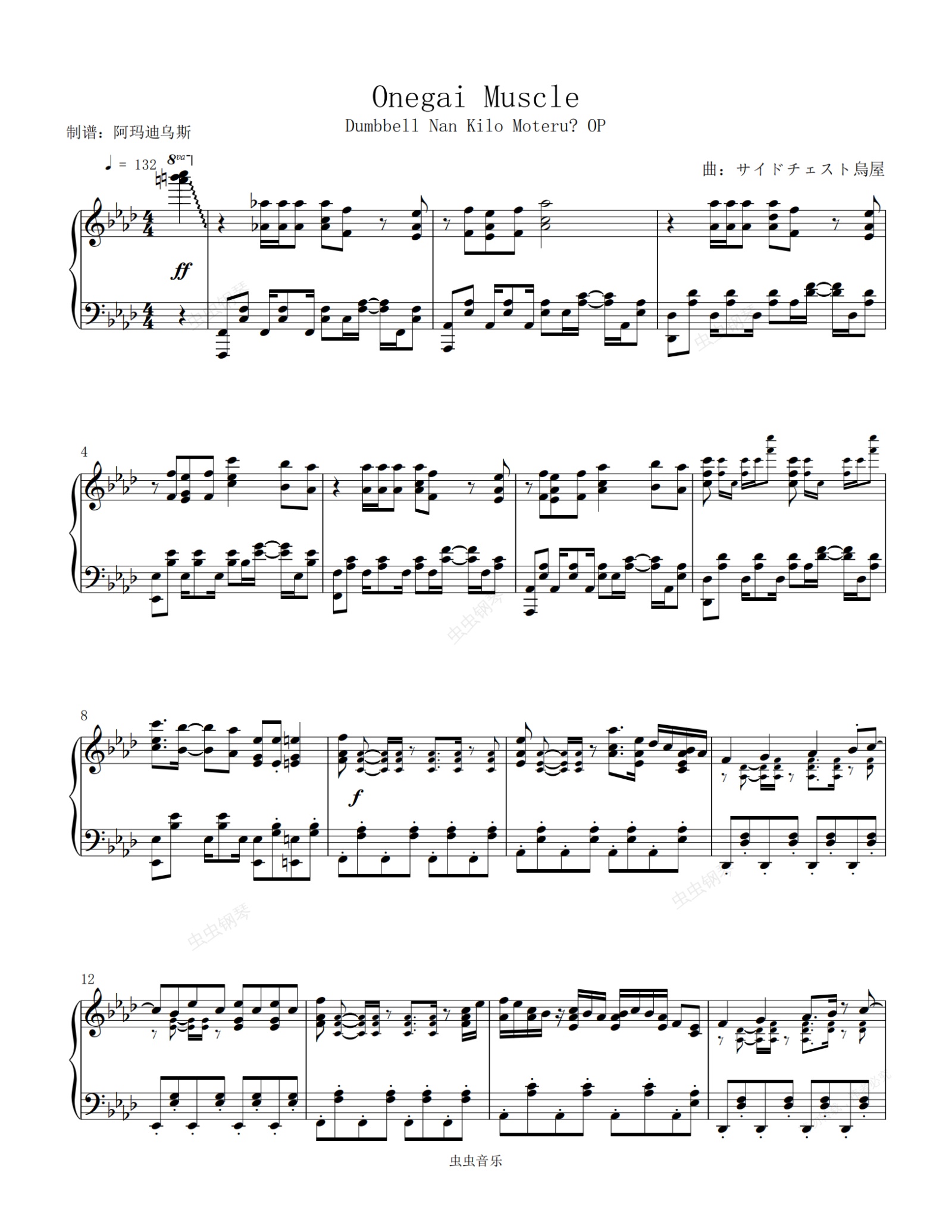 钢琴谱:流汗吧!健身少女 OP < 願いマッスル > 原调高还原完整版本