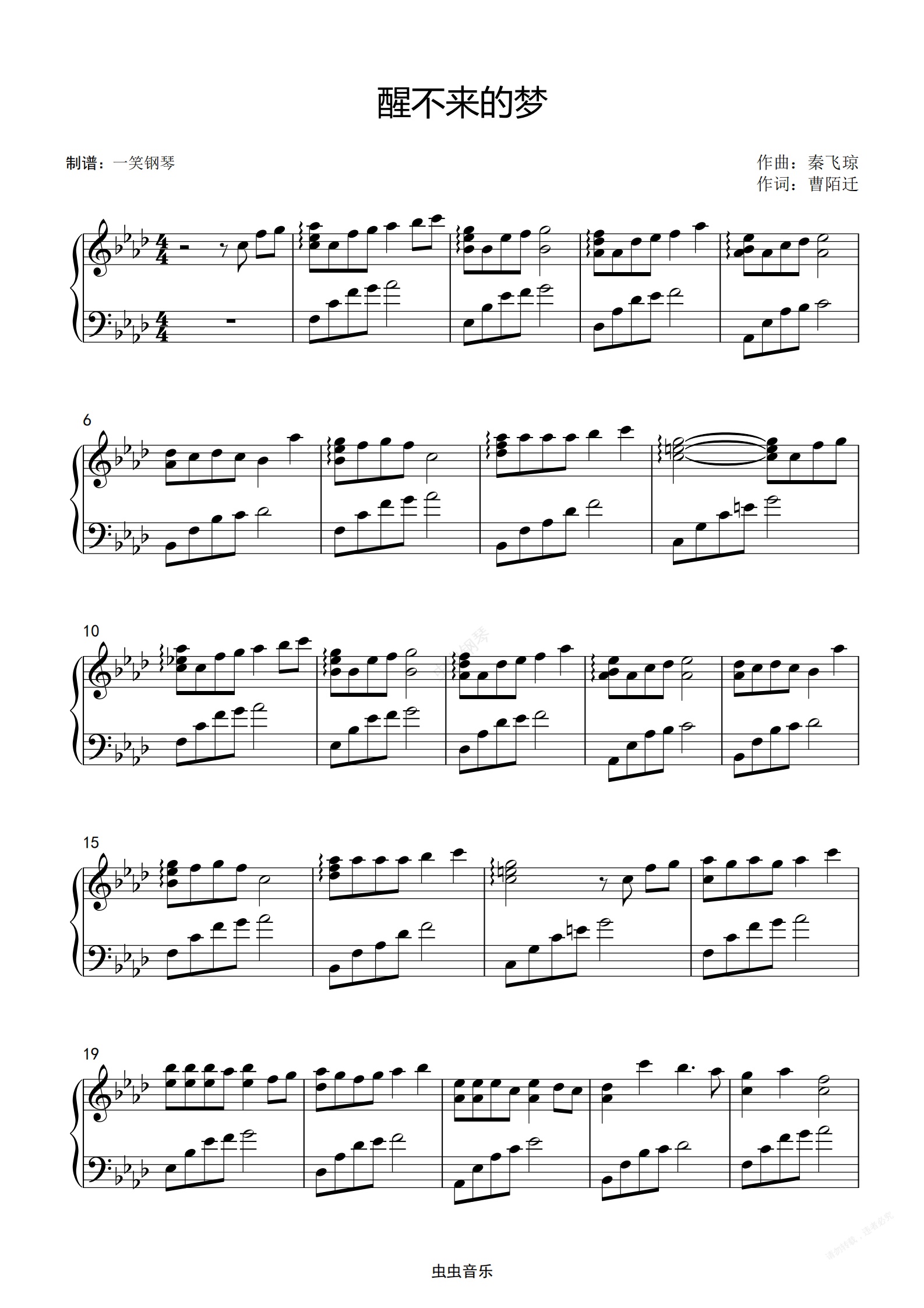 钢琴谱:醒不来的梦-回小仙 【超级好听版】