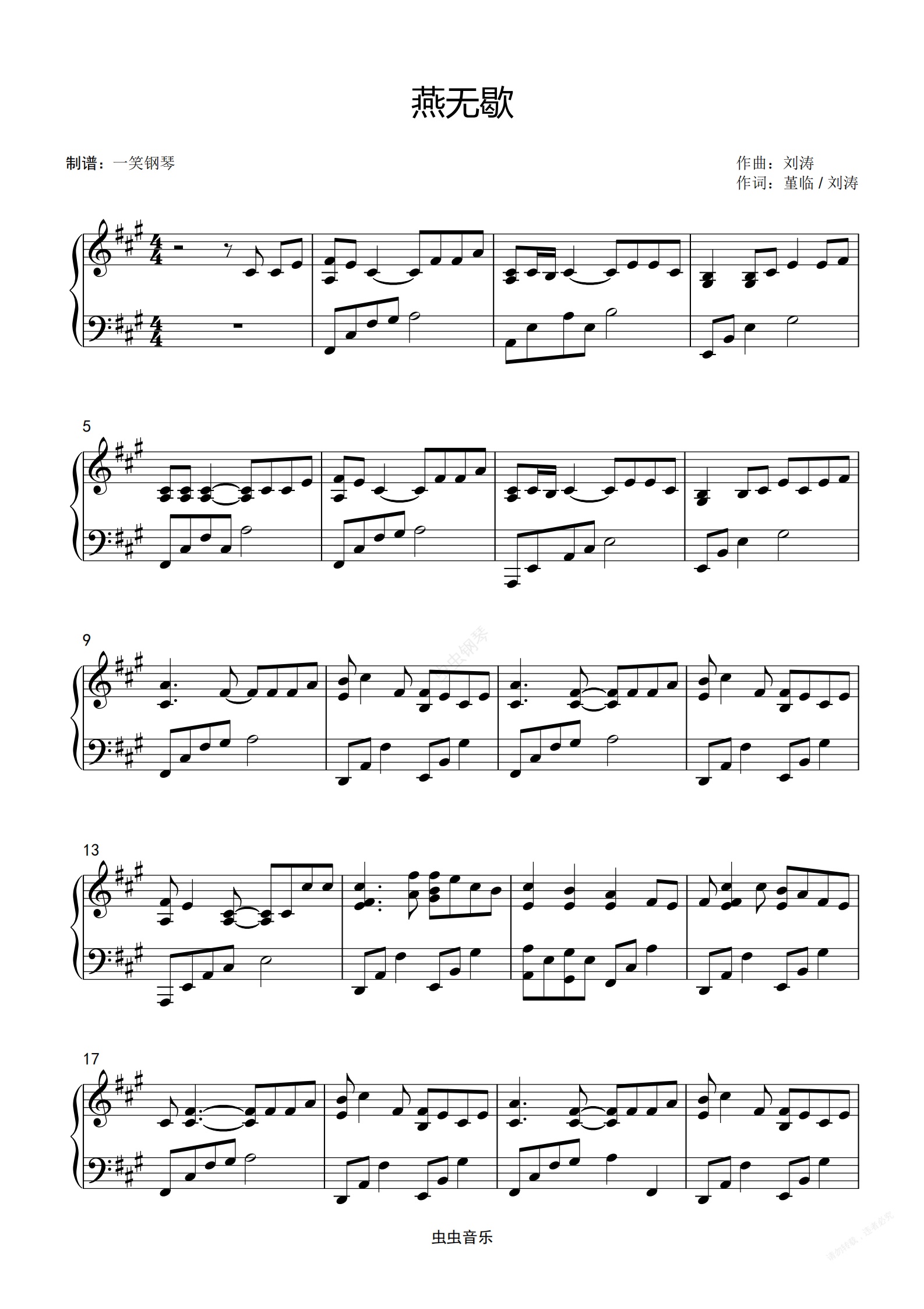 钢琴谱:燕无歇-蒋雪儿 【超级好听版】