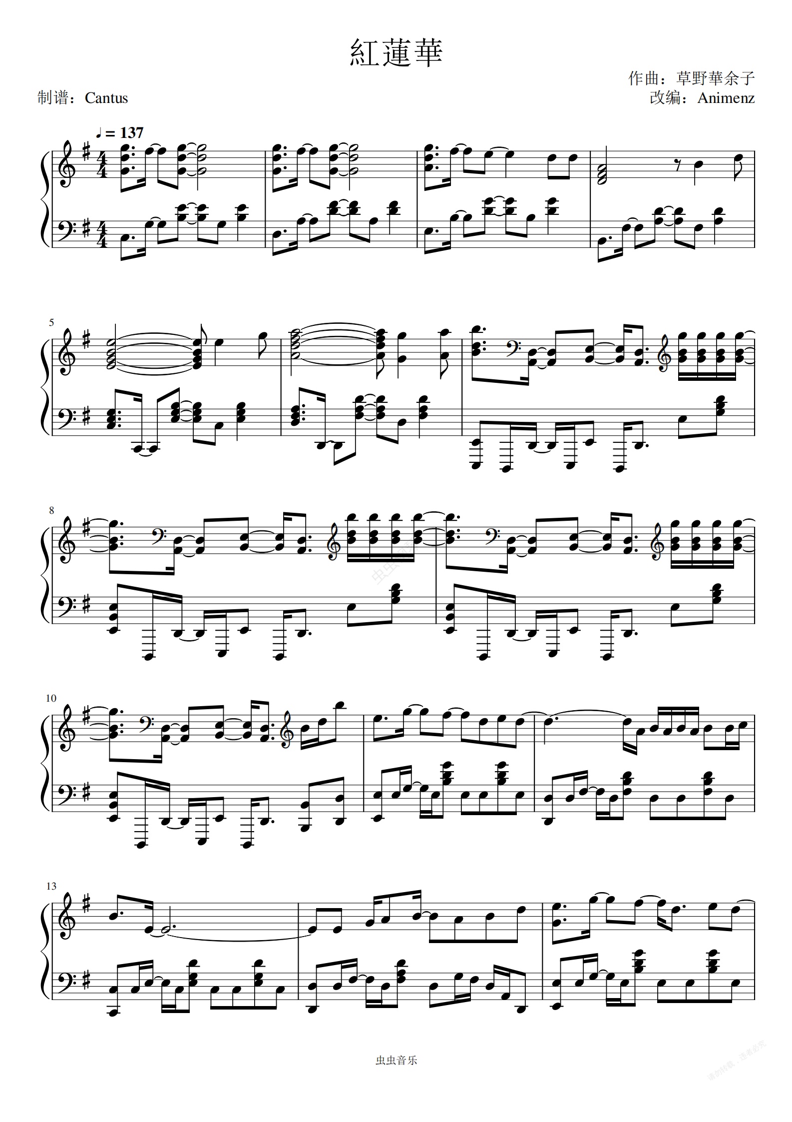 钢琴谱:紅蓮華/红莲华-鬼灭之刃