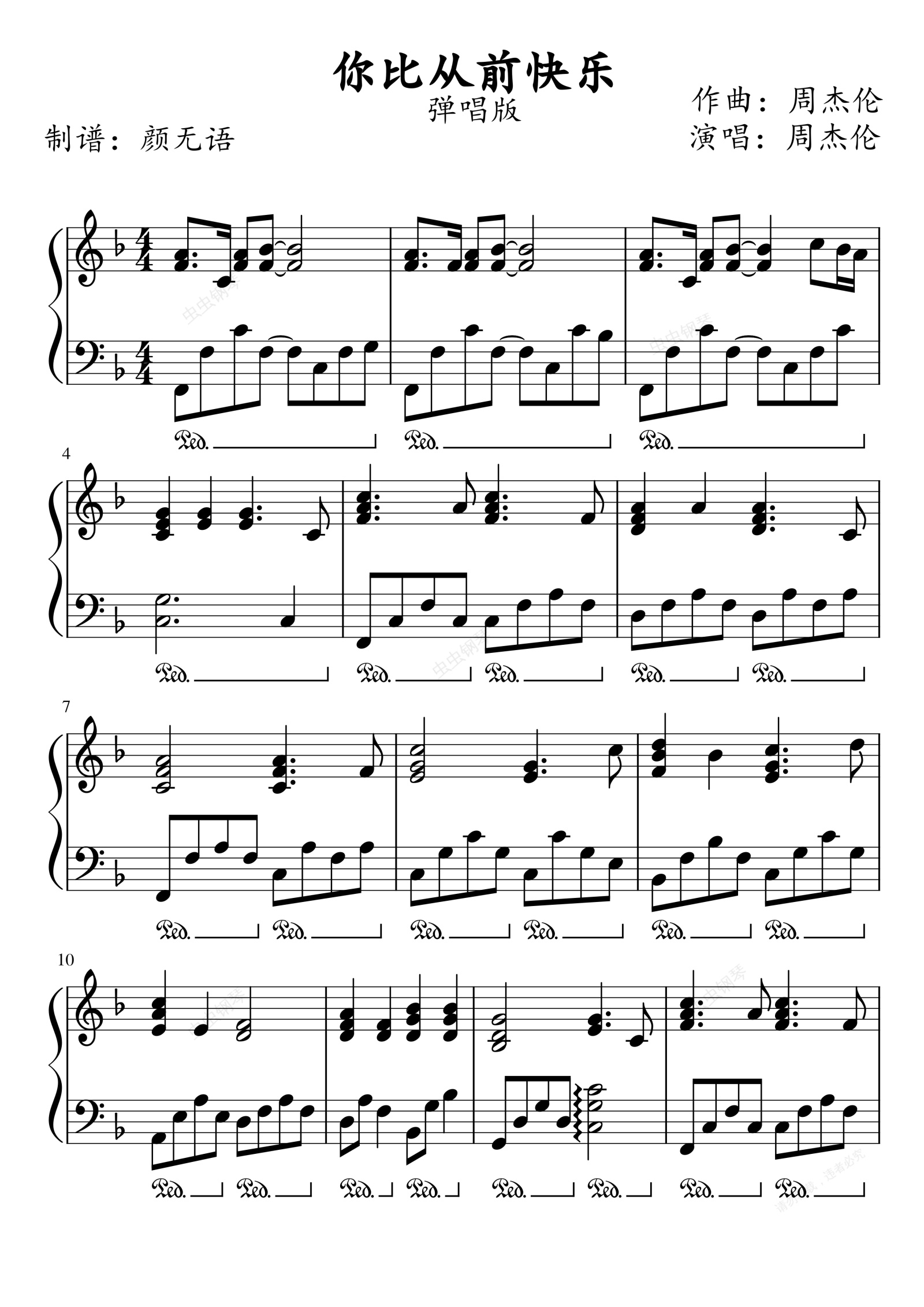 钢琴谱:你比从前快乐 F调 极致弹唱版