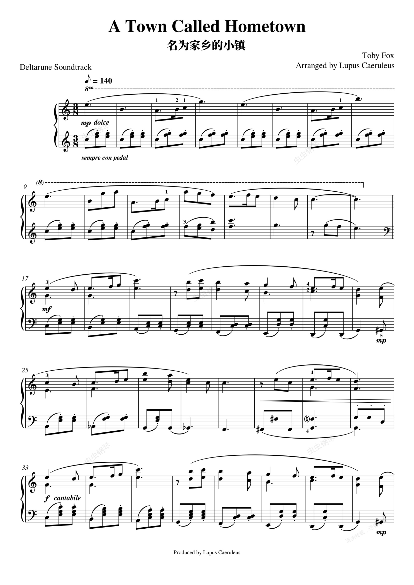 钢琴谱:【Deltarune】A Town Called Hometown - 名为家乡的小镇