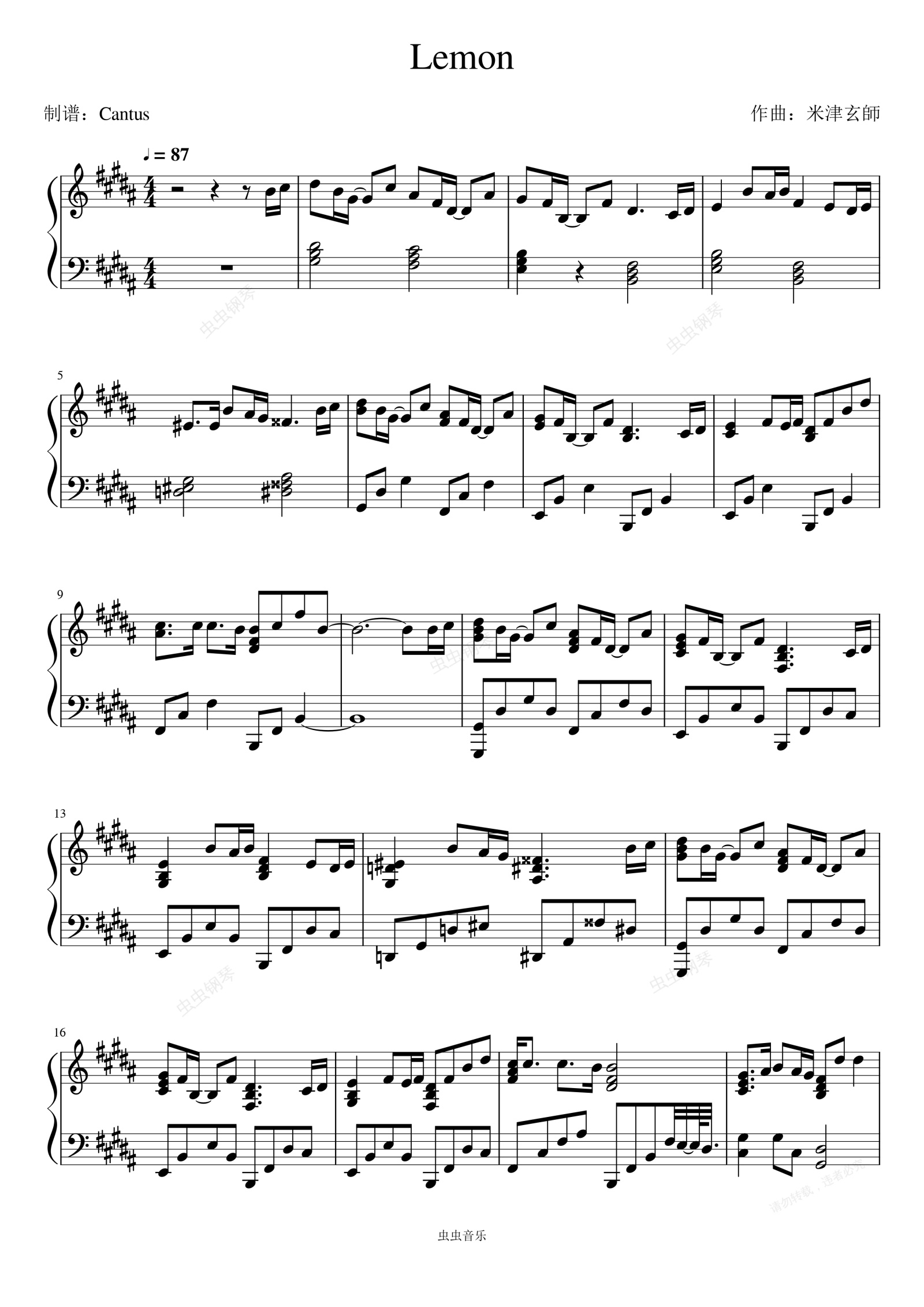 钢琴谱:Lemon/柠檬-Unnatural/非自然死亡