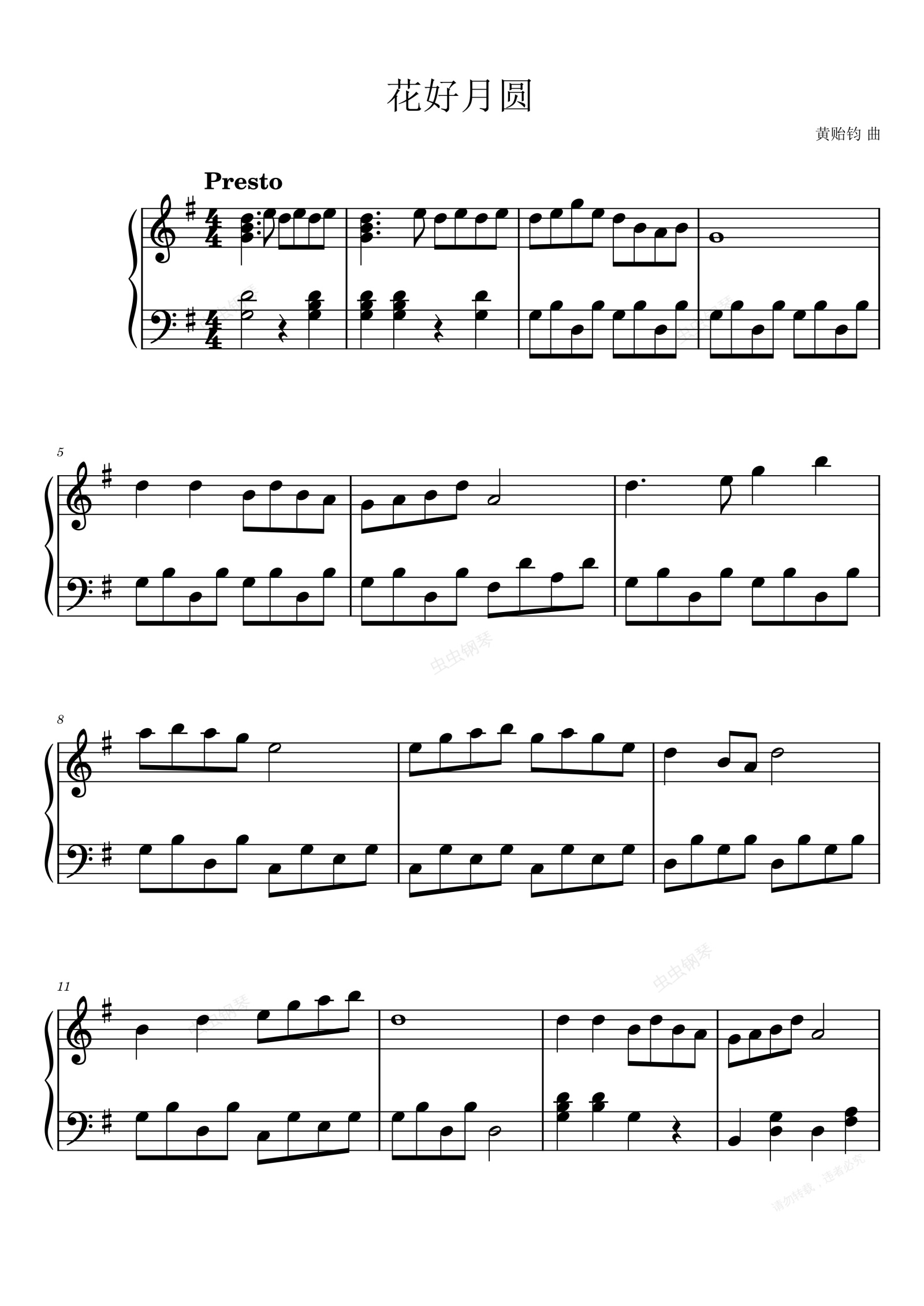 钢琴谱:节日热曲 《花好月圆》儿童简易版