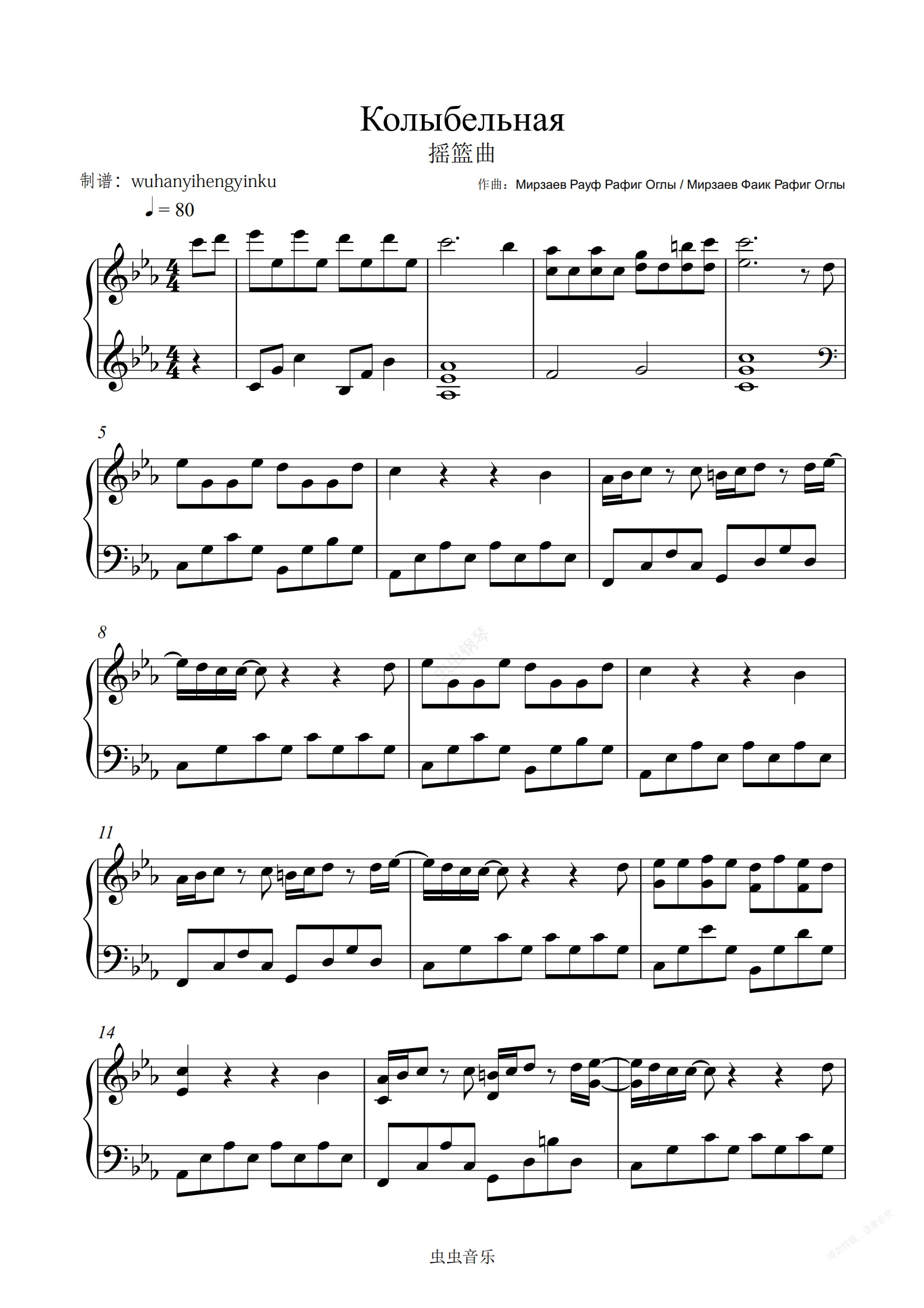 钢琴谱:《Колыбельная》摇篮曲(俄)独奏版