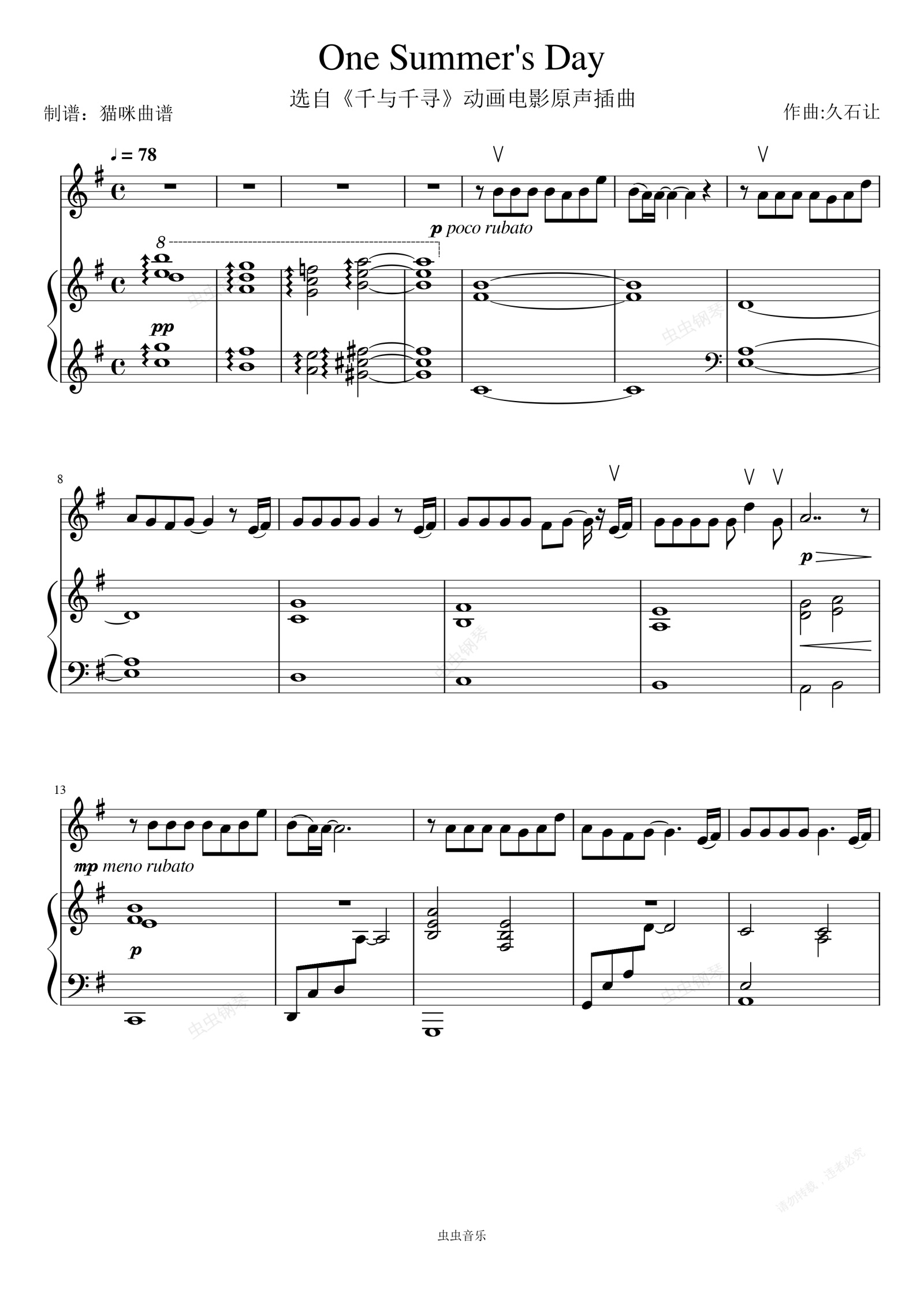 钢琴谱:《One Summer's Day》-选自《千与千寻》动画电影原声插曲-久石让