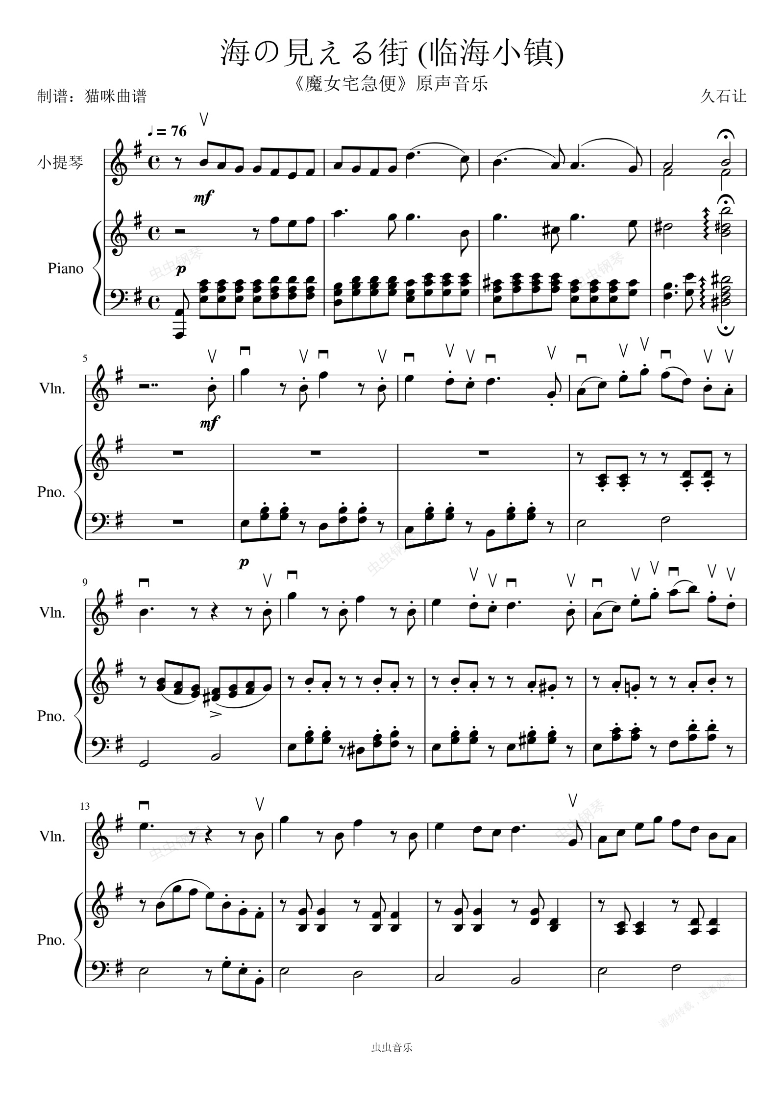 钢琴谱:海の見える街 (临海小镇)-《魔女宅急便》原声音乐