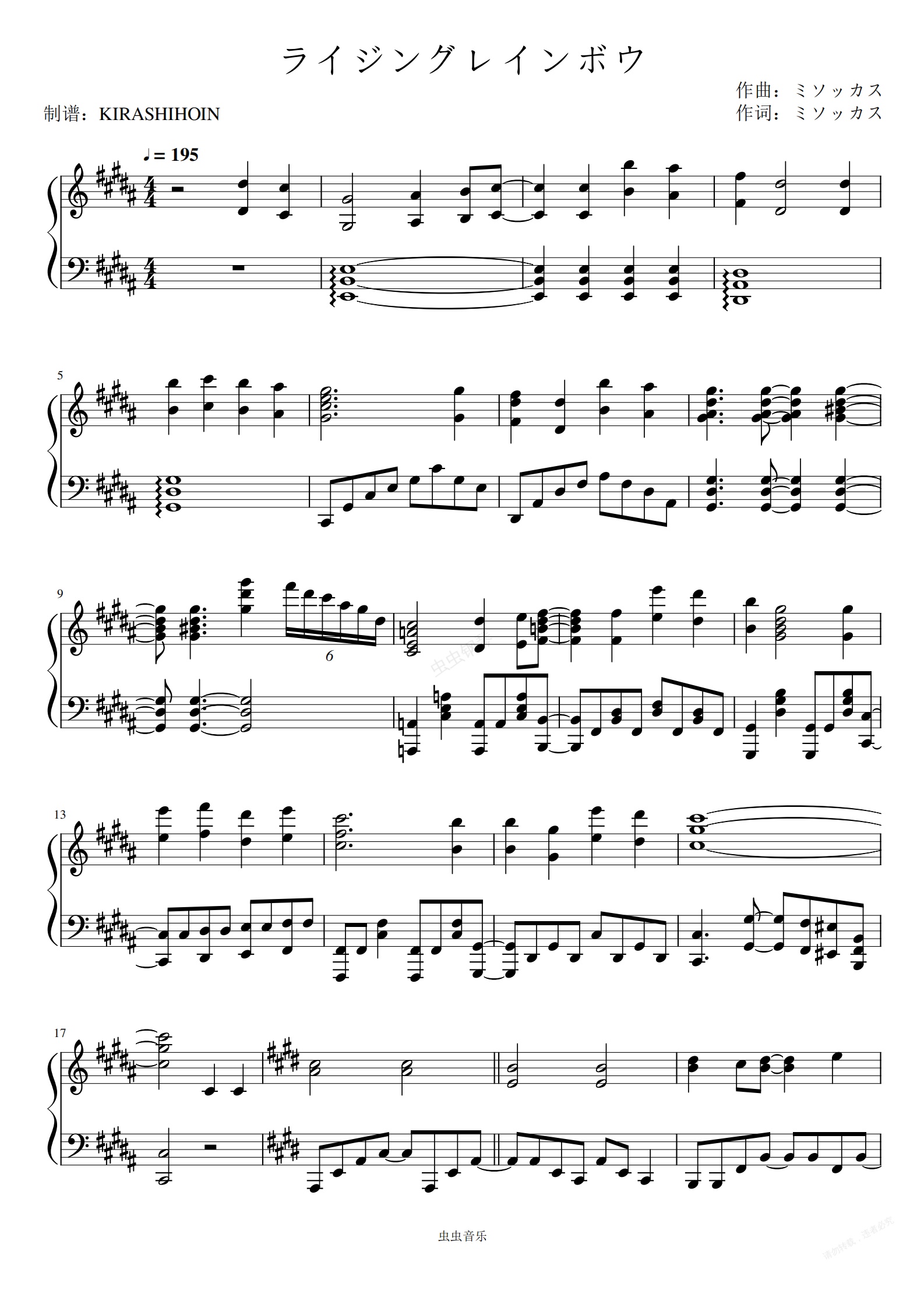 钢琴谱:ライジングレインボウ(《食戟之灵》OP)