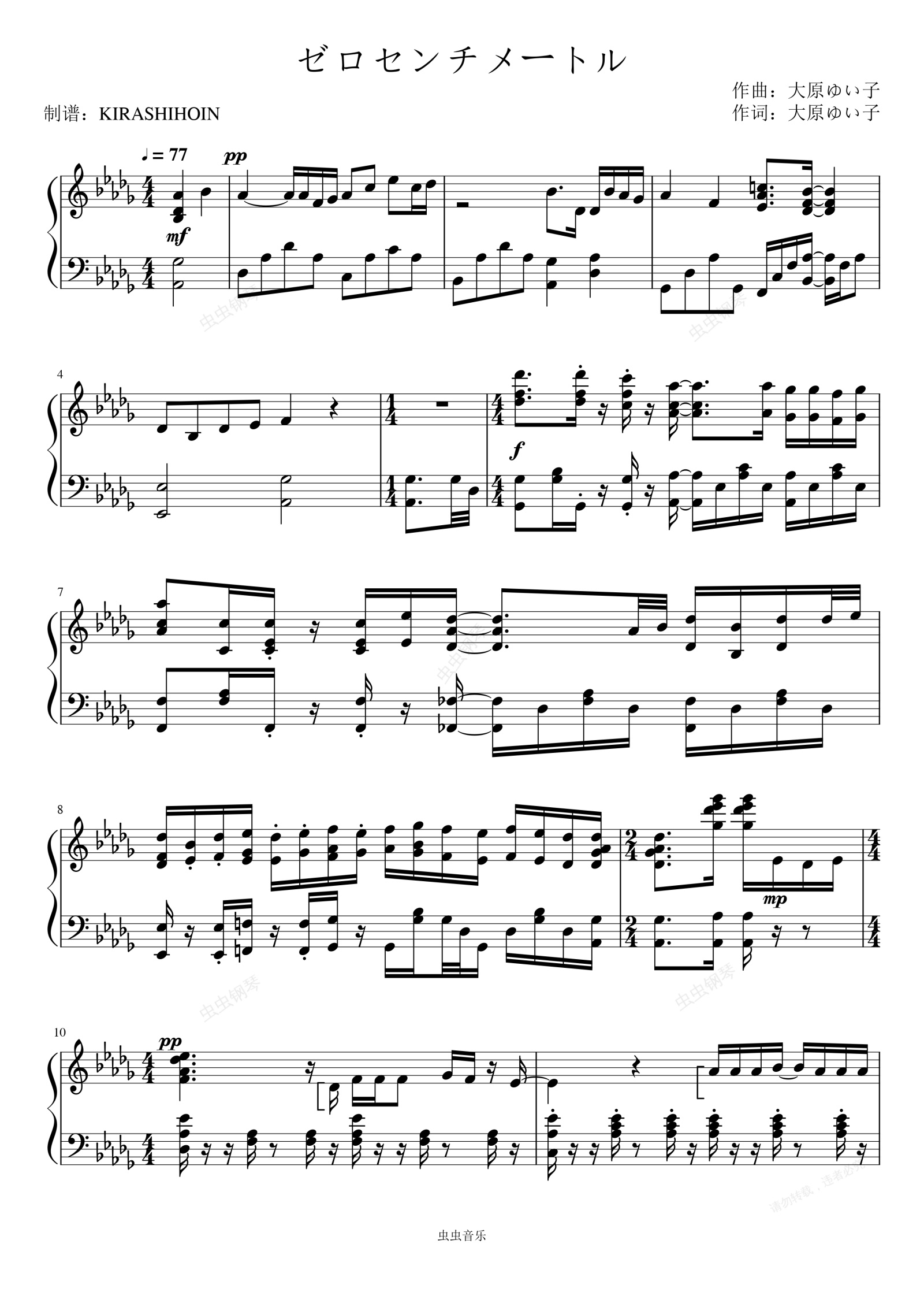 钢琴谱:ゼロセンチメートル(《擅长捉弄的高木同学 第二季》OP)
