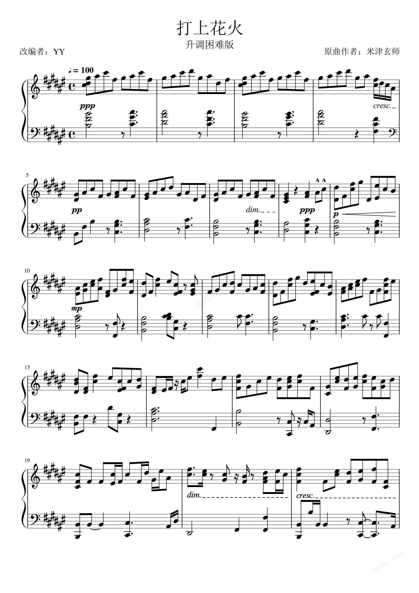 钢琴谱:打上花火免费升调困难版(作废)
